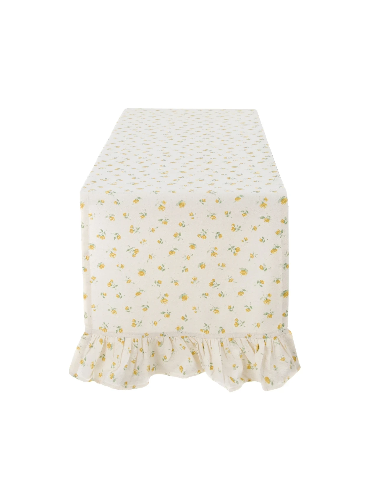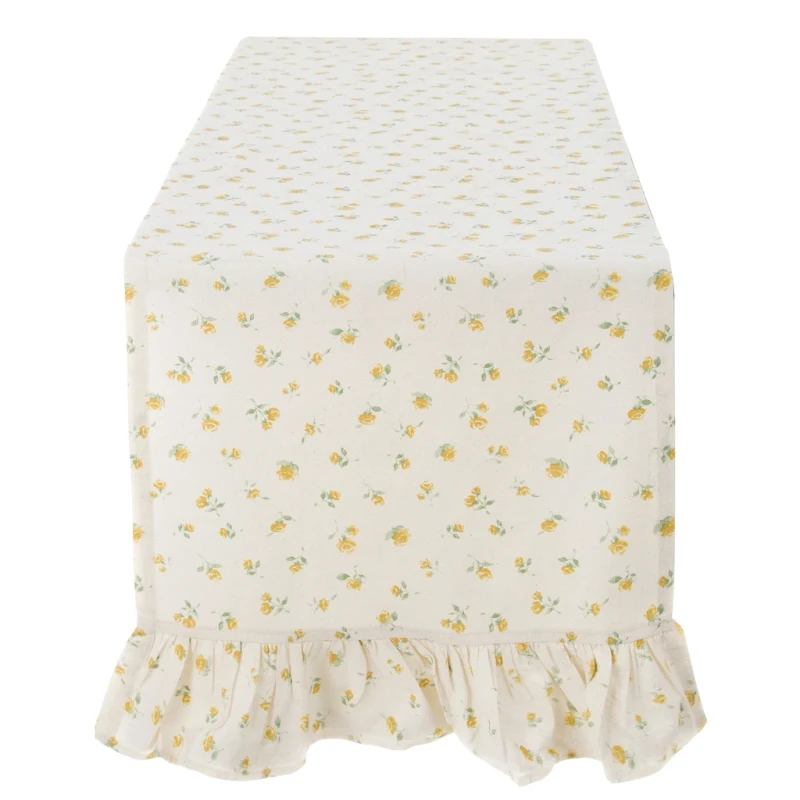 Raffinato e delicato, il runner con gala di Blanc Mariclò della Floret Collection è un vero omaggio allo stile shabby chic. Realizzato in morbido cotone 100%, presenta un elegante motivo di roselline gialle su fondo chiaro e una morbida gala alta 10 cm che incornicia con grazia la tovaglia. Perfetto per valorizzare la tua tavola con un tocco romantico e luminoso, unisce qualità artigianale e gusto raffinato in ogni dettaglio.