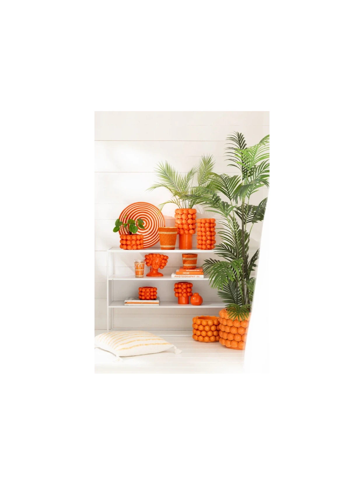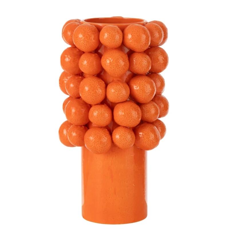 Porta energia e colore nella tua casa con questo vaso in ceramica arancione. Il suo design unico, con sfere che ricordano morbide arance, cattura lo sguardo e trasforma ogni angolo in un’esplosione di stile e creatività. Con un’altezza di 34,5 cm e una presenza scenica elegante, questo vaso diventa protagonista su tavoli, mensole o ingressi, portando vivacità e originalità senza rinunciare alla raffinatezza. Perfetto per fiori freschi o come pezzo decorativo indipendente, è un oggetto che racconta personalità e gusto.