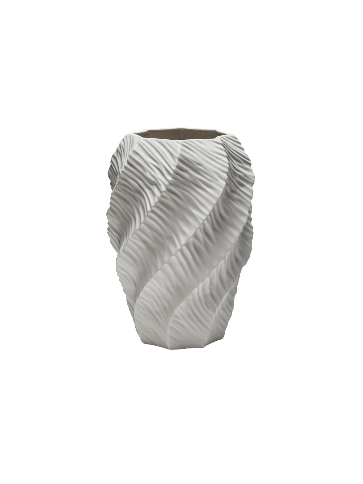 Vaso Onde della collezione Flussi firmato Henriette. In porcellana bianca opaca con interno smaltato, unisce design sinuoso e funzionalità: può contenere liquidi.