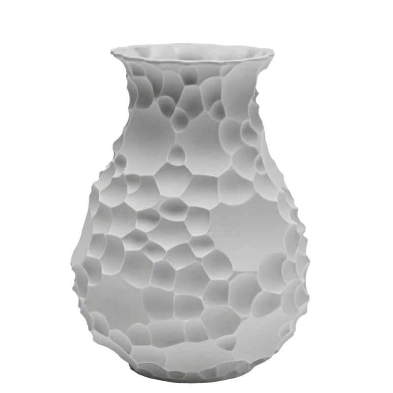 Il vaso Rocks di Henriette della collezione Flussi è un complemento d’arredo raffinato che interpreta con stile la forza e l’eleganza della materia. Realizzato in porcellana bianca mat con interno smaltato, presenta una superficie irregolare e scolpita che richiama le forme naturali della roccia. Perfettamente adatto anche a contenere fiori freschi, grazie alla finitura interna impermeabile, unisce estetica e funzionalità. Con le dimensioni 24 x H 31 cm, si inserisce armoniosamente in spazi moderni o classici, aggiungendo un tocco contemporaneo e sofisticato. Firmato Henriette, il vaso Rocks celebra l’equilibrio tra solidità e leggerezza tipico della collezione Flussi.