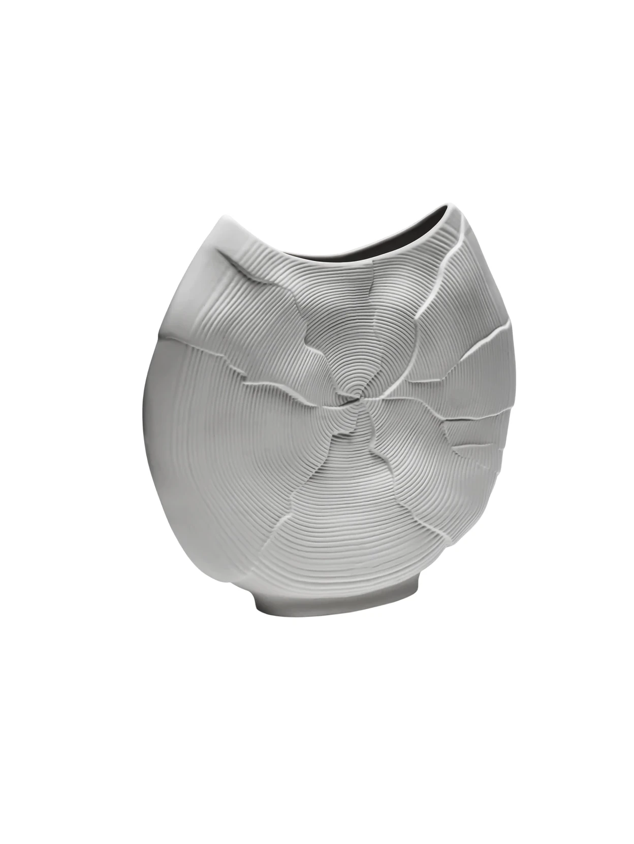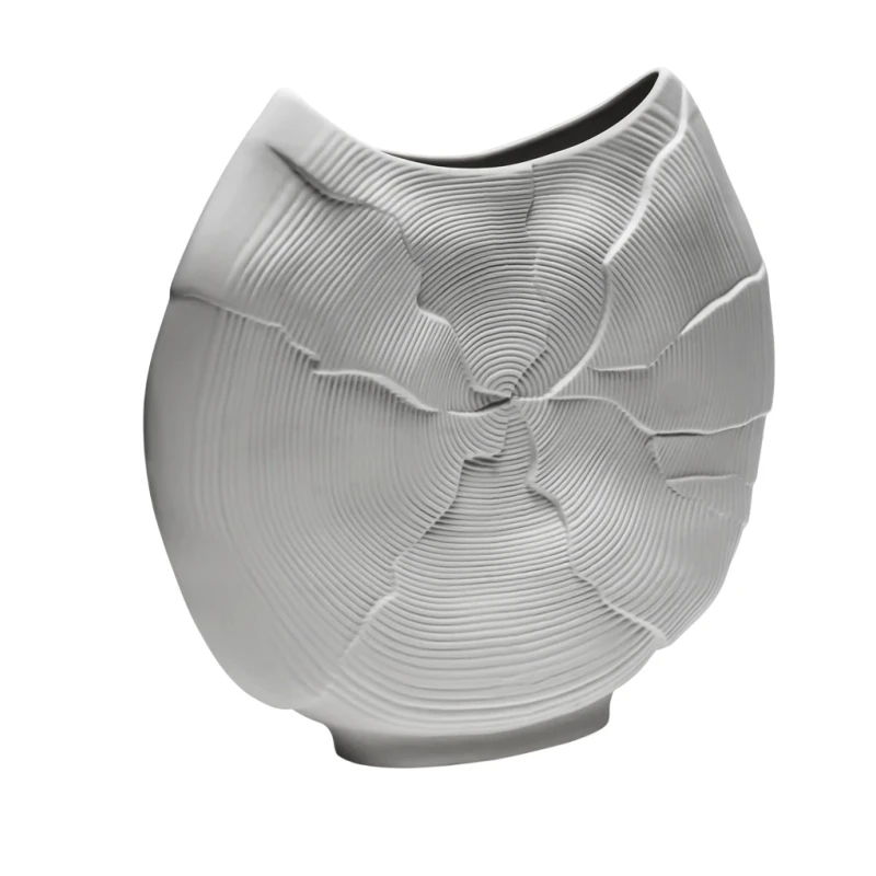 Vaso Increspato Bianco della collezione Flussi firmato Henriette. In porcellana bianca mat con interno smaltato, può contenere liquidi. Design morbido e raffinato.