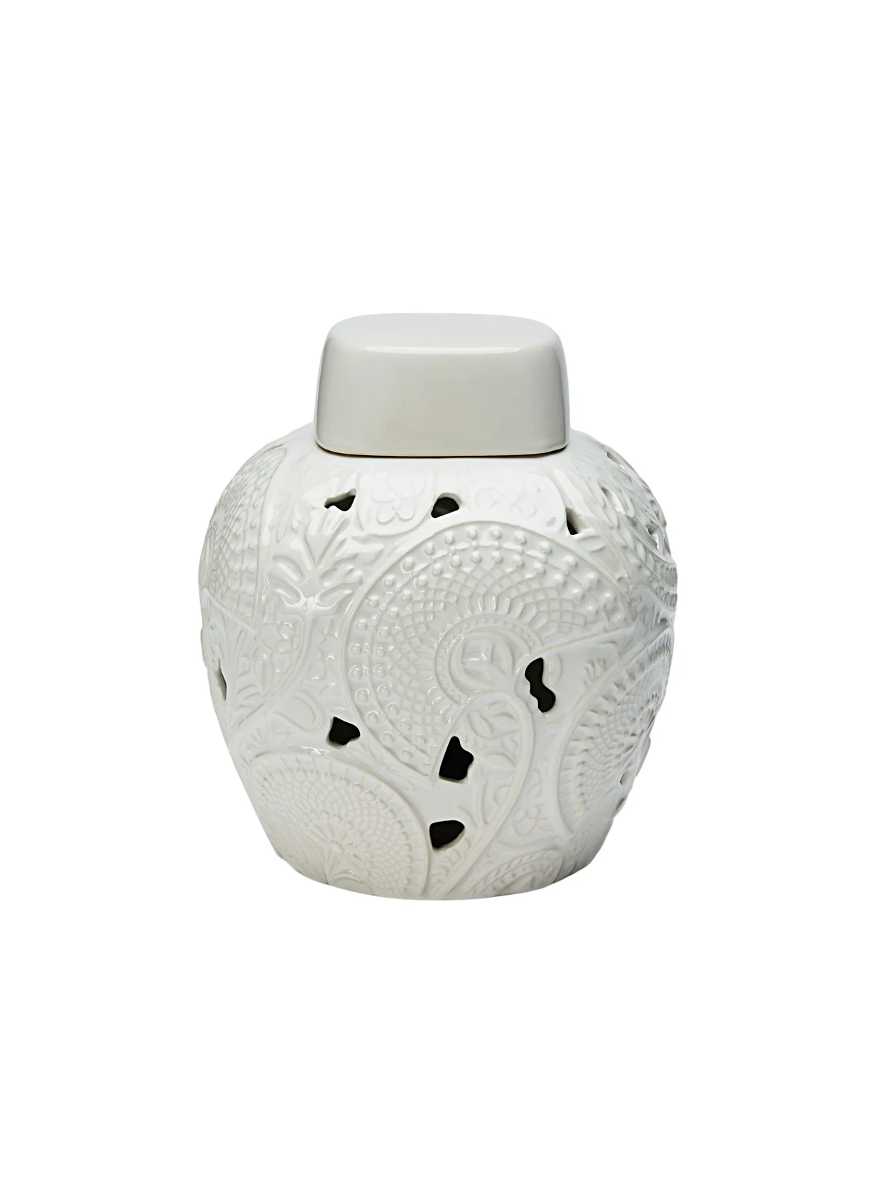 Potiche Lotus Henriette in ceramica bianca, dimensioni 15x18 cm. Elegante e versatile, perfetto da solo o come complemento della collezione Lotus.