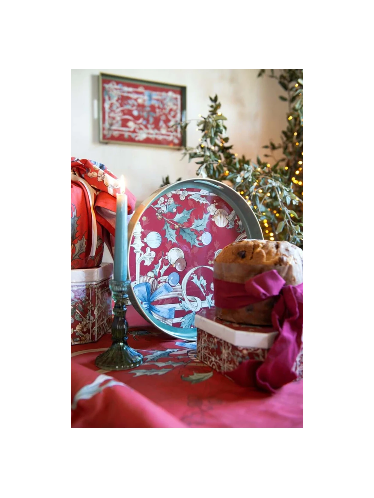 Il vassoio rotondo Intrecci di Sogno firmato Blanc MariClò è un complemento d’arredo raffinato e festoso, perfetto per impreziosire la tavola di Natale. Realizzato in plastica verde con bordo dorato ed un elegante fondo rosso decorato con motivi natalizi come agrifogli, palline e fiocchi che richiamano la magia delle feste. Con un diametro di 35 cm e un’altezza di 4 cm, è ideale per servire dolci, biscotti o bevande, ma anche come base decorativa per centrotavola e composizioni luminose. Lo stile romantico e curato nei dettagli tipico di Blanc MariClò lo rende un accessorio elegante, perfetto per chi ama portare un tocco di calore e raffinatezza nella casa durante il periodo natalizio.