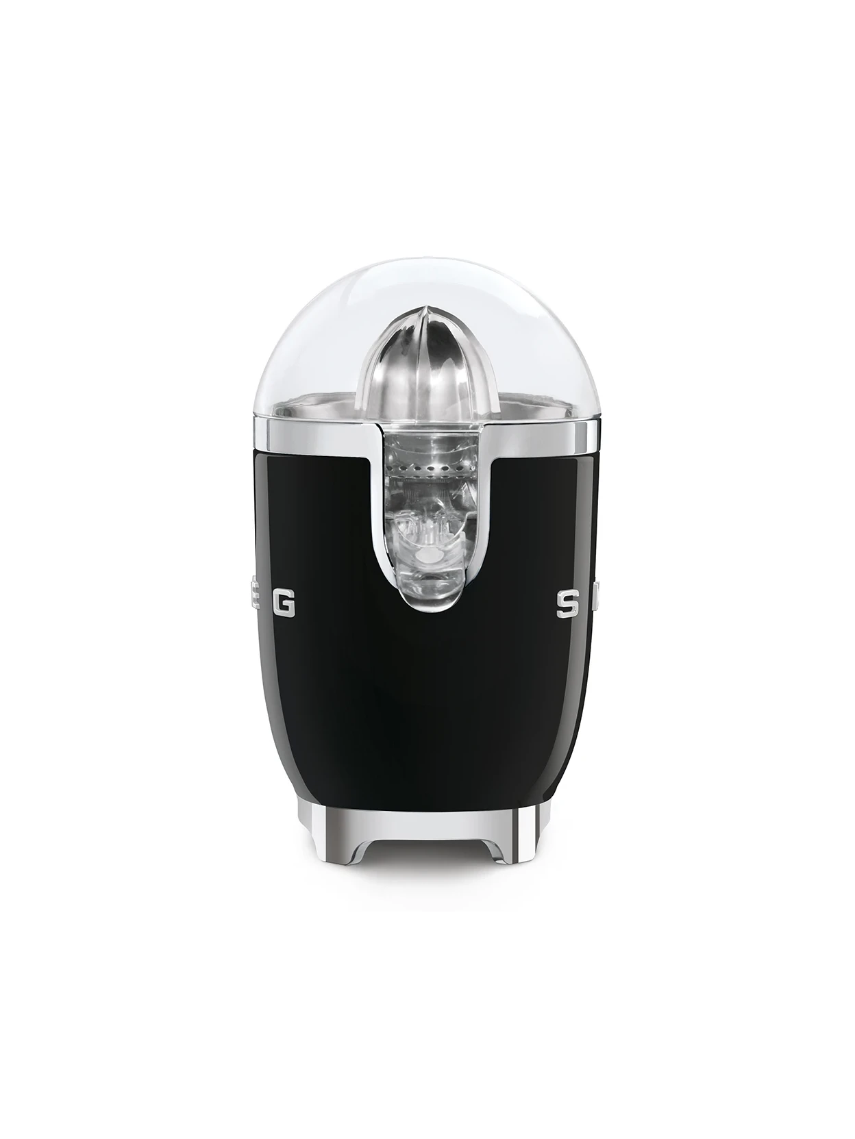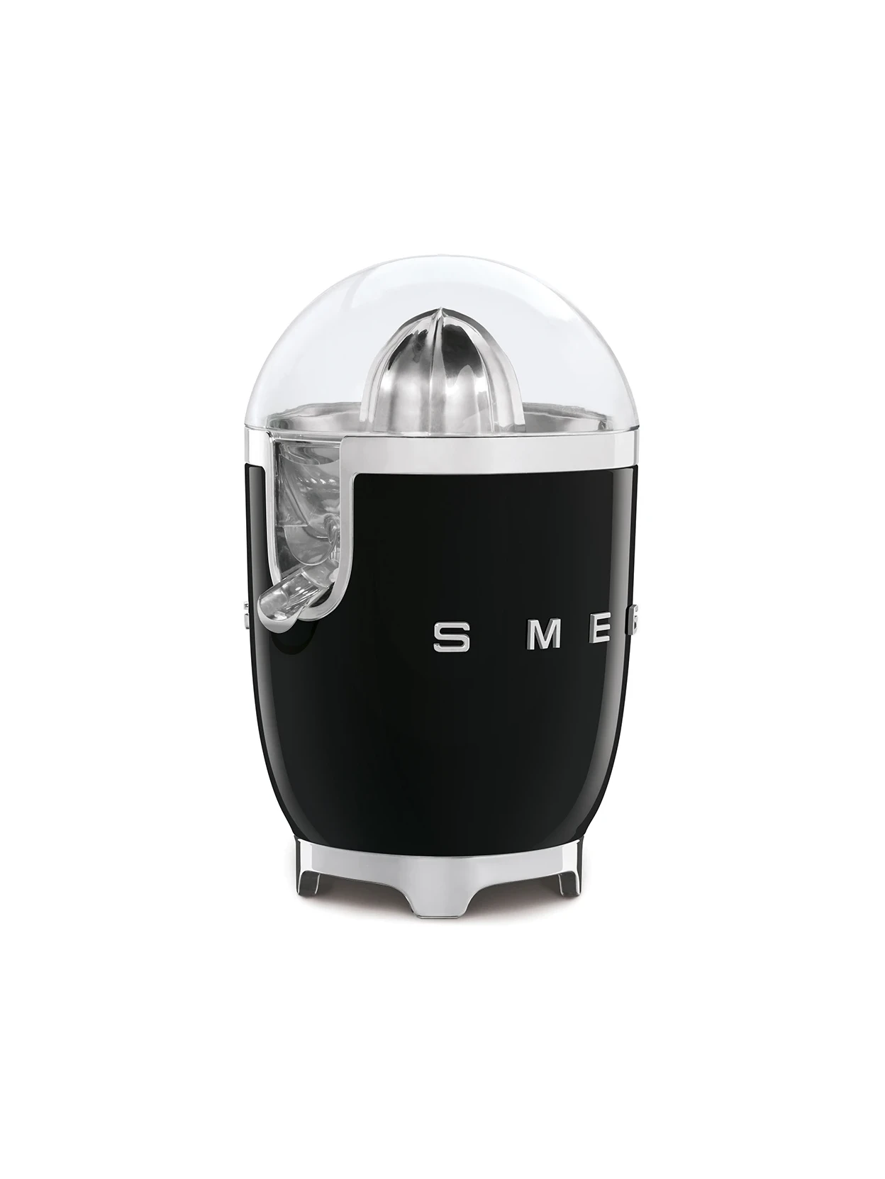 Smeg's glossy black citrus juicer combines iconic 50s design with reliable performance. Compact, elegant, and functional, it's ideal for making freshly squeezed juices in style, adding a touch of sophistication to your kitchen.