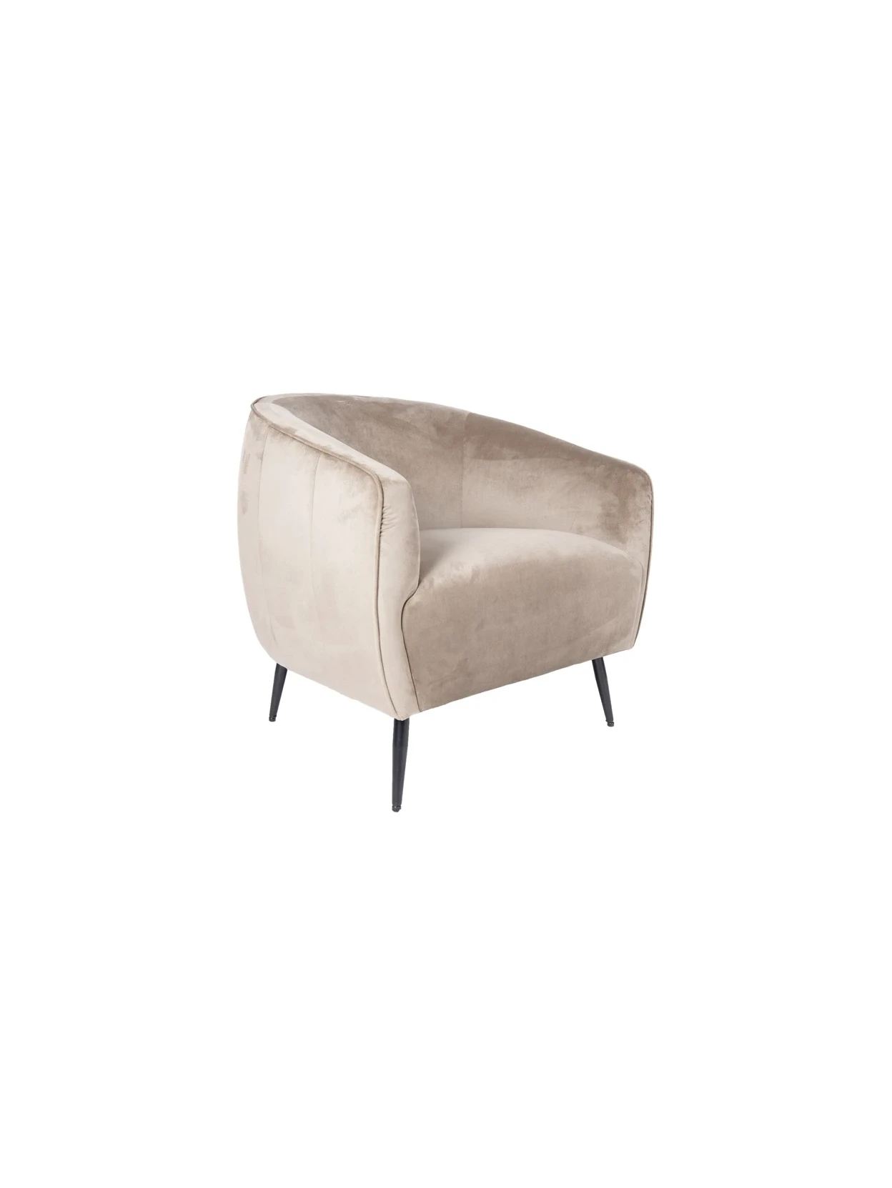 The Vinn armchair by PTMD combines comfort and contemporary design in a single, elegant solution. Upholstered in a soft, dove-grey velvet-effect fabric, it exudes a sense of refinement and warmth. The black metal legs add a modern touch and ensure stability, while the internal structure, made of plywood, solid wood, and foam, offers strength and long-lasting comfort. Measuring 67 x 78 x 72 cm, it's perfect for living rooms, bedrooms, or relaxation areas, adding character and style in true PTMD style.