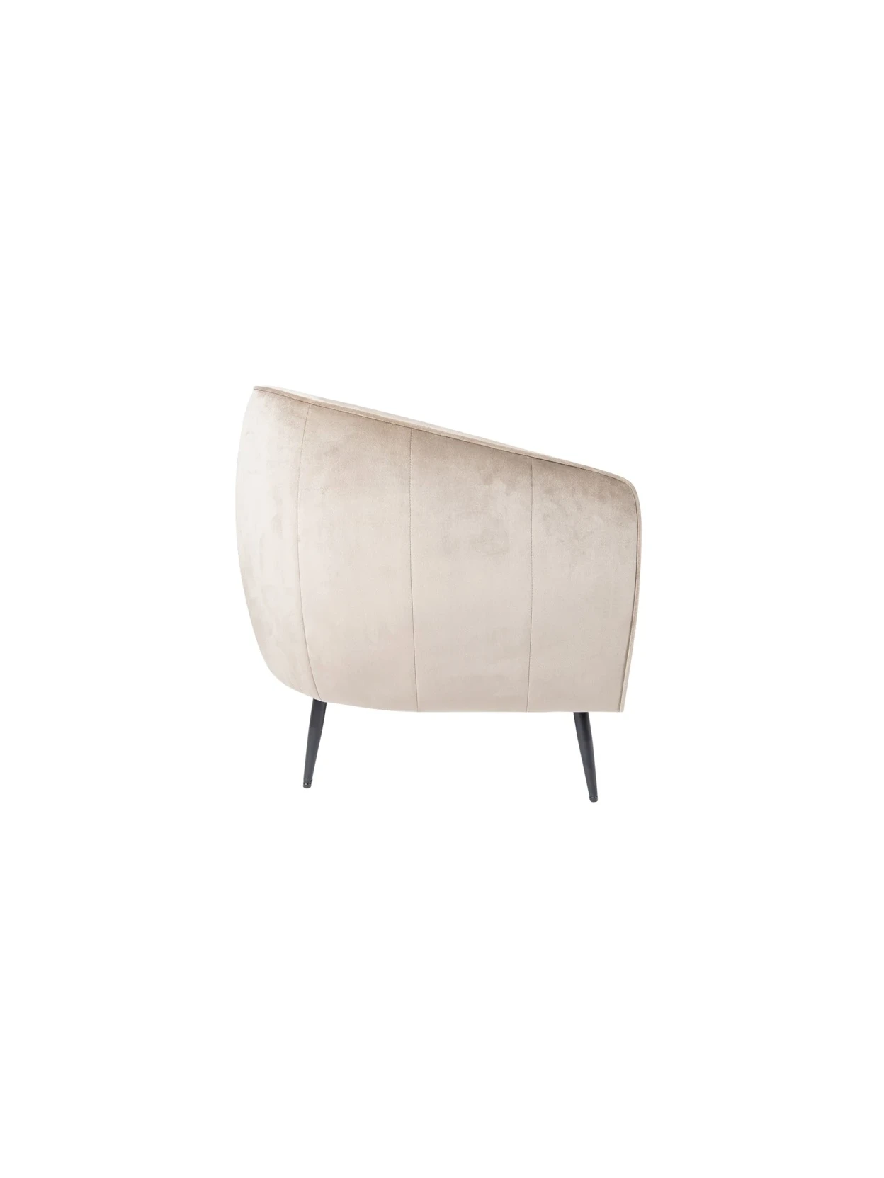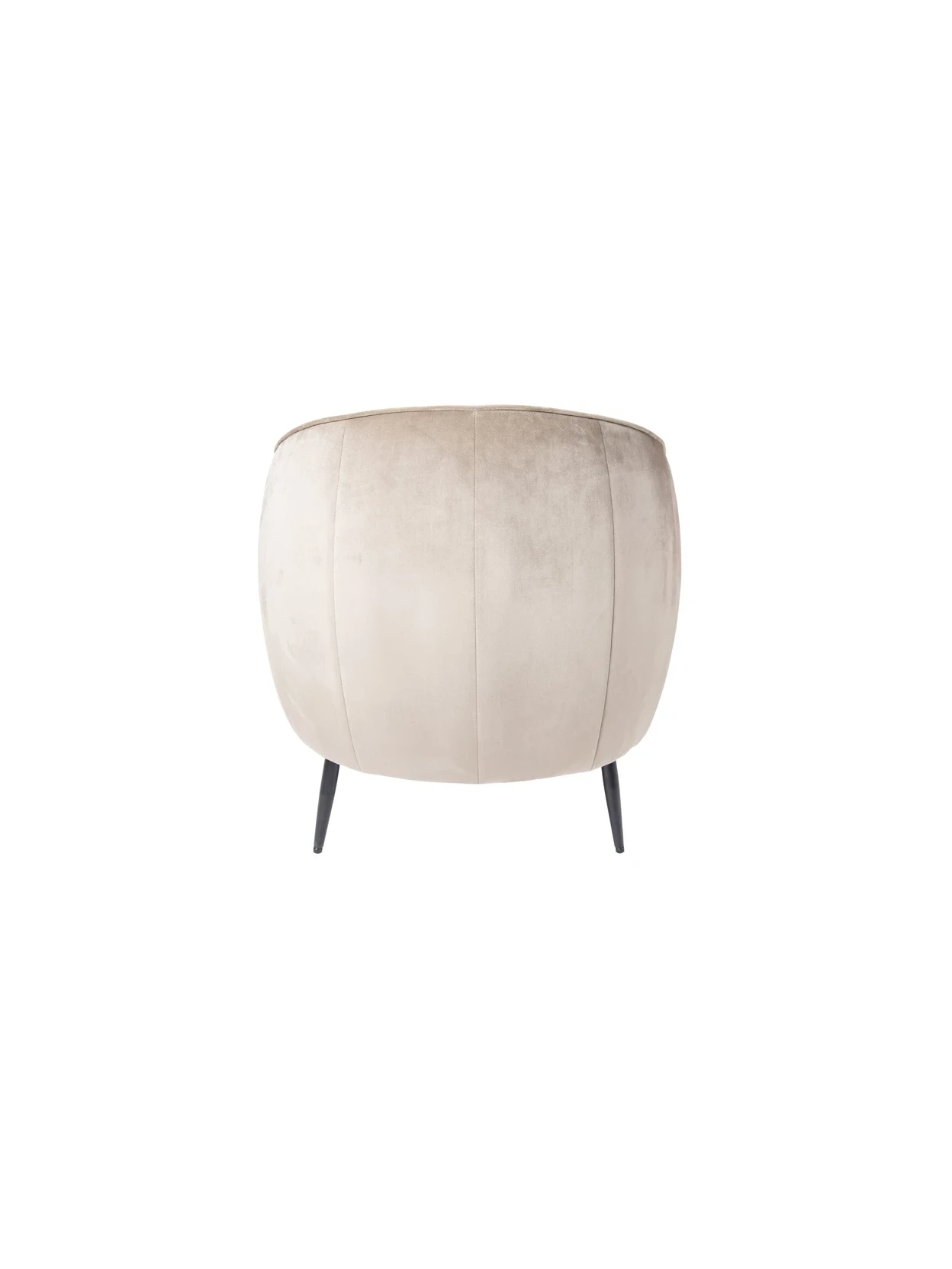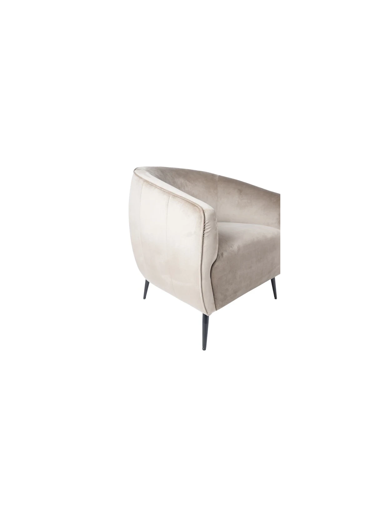 Vinn armchair by PTMD in dove gray velvet-effect fabric with black metal legs. Elegant and comfortable, it's ideal for adding a touch of luxury to any space.