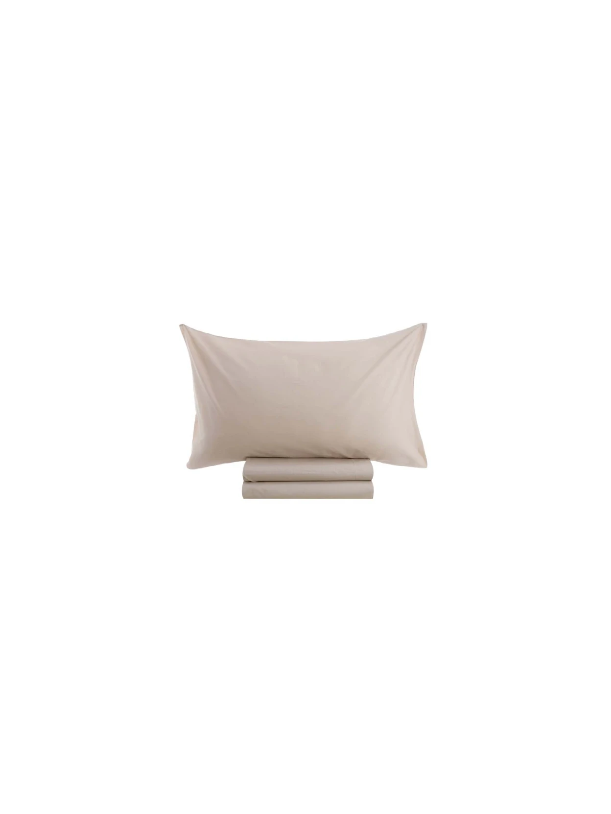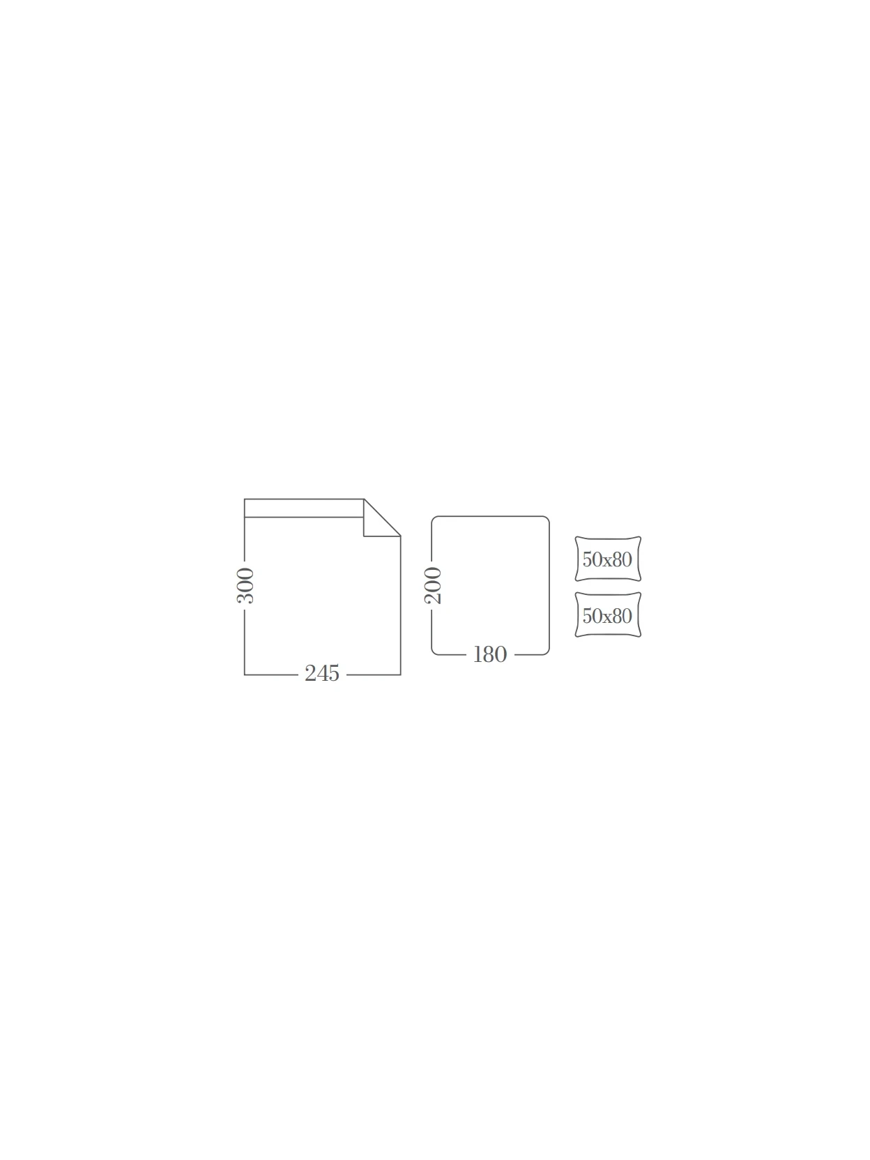 Complete double bed set with a 245x300 cm bedspread, a 180x200 cm flat sheet, and two 50x80 cm pillowcases. Made from 100% Italian cotton, it combines softness, quality, and natural style in an elegant beige color.