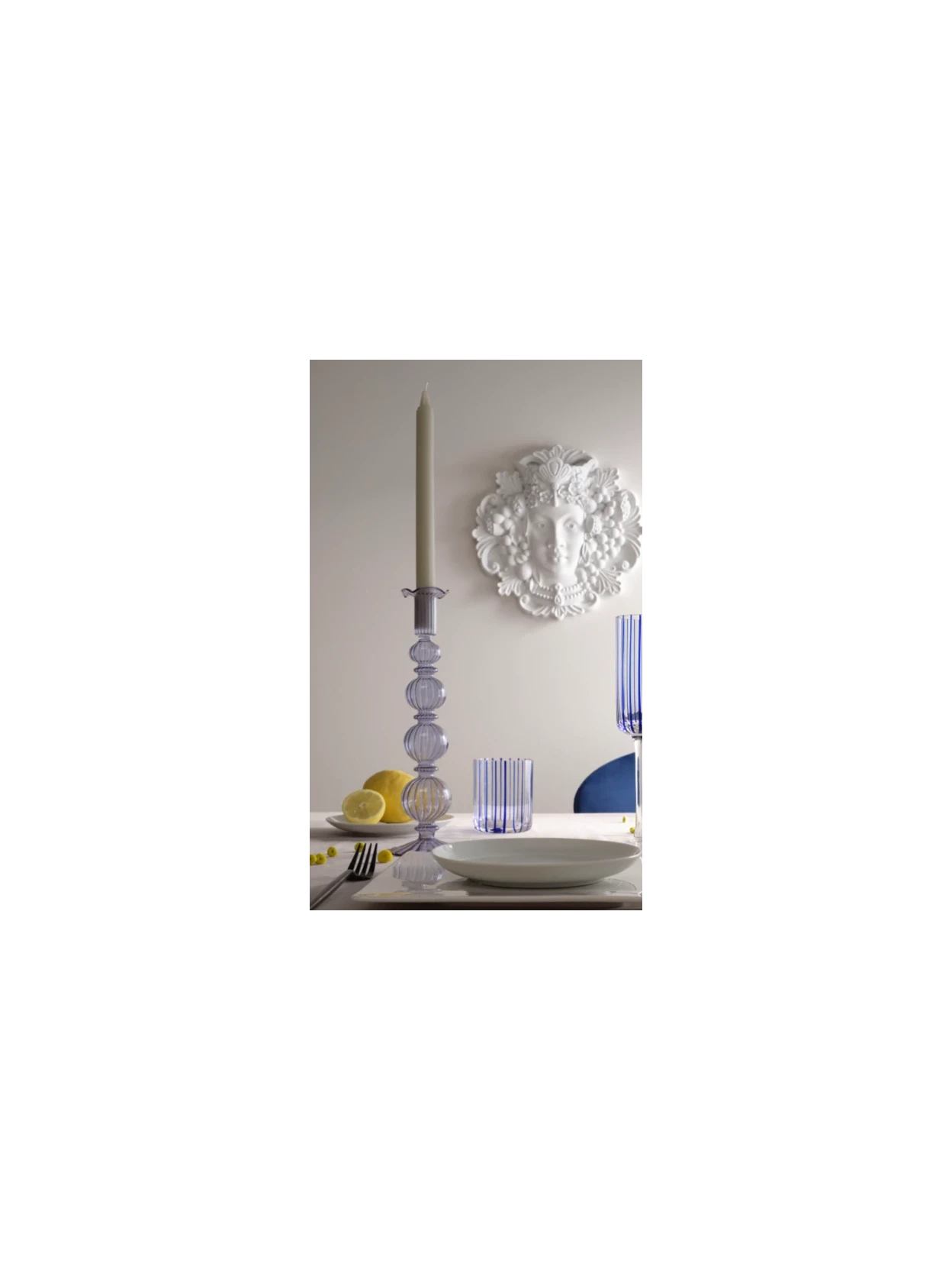 The Versailles Candlestick by Henriette is a decorative object that blends classic and contemporary styles. Crafted from azure glass, it captures the light and creates delicate reflections, making any space more harmonious and luminous. Standing 26.5 cm tall, the candlestick features elegant proportions that make it ideal for tables, shelves, or living areas, adding a touch of timeless refinement.
