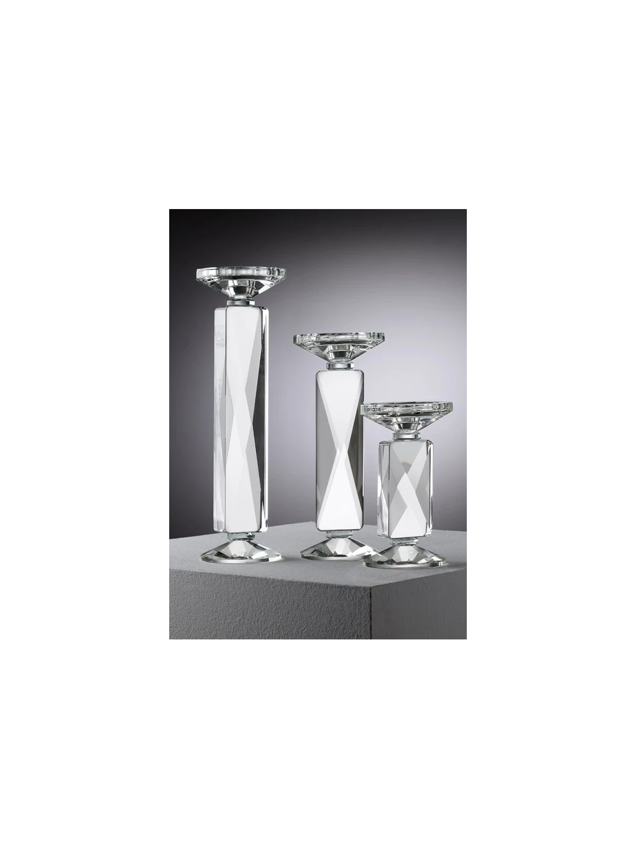 Ottaviani's elegant and modern rectangular crystal candlestick is available in two sizes: medium (28 cm) and large (36 cm). A classy piece to illuminate any space with style.