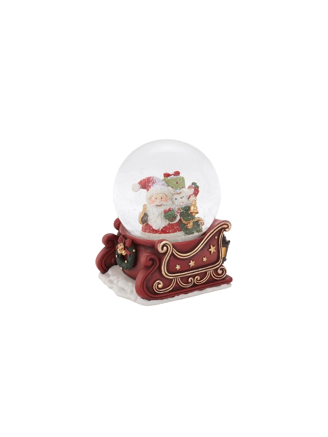 Experience the magic of Christmas Eve with the Sleigh Musical Globe from the Henriette Prestige Collection. Inside, a sleigh glides through the snow amidst twinkling lights, while a gentle melody fills the room with harmony and wonder. Every detail, sculpted and hand-painted, evokes the joy and anticipation of Christmas Eve. Measuring 10.5 × 10 × 14.5 cm, this globe becomes a small theater of emotions, ideal for adorning shelves, consoles, or corners dedicated to the magic of the holidays. Henriette transforms Christmas tradition into a living and poetic scene that captivates both adults and children.