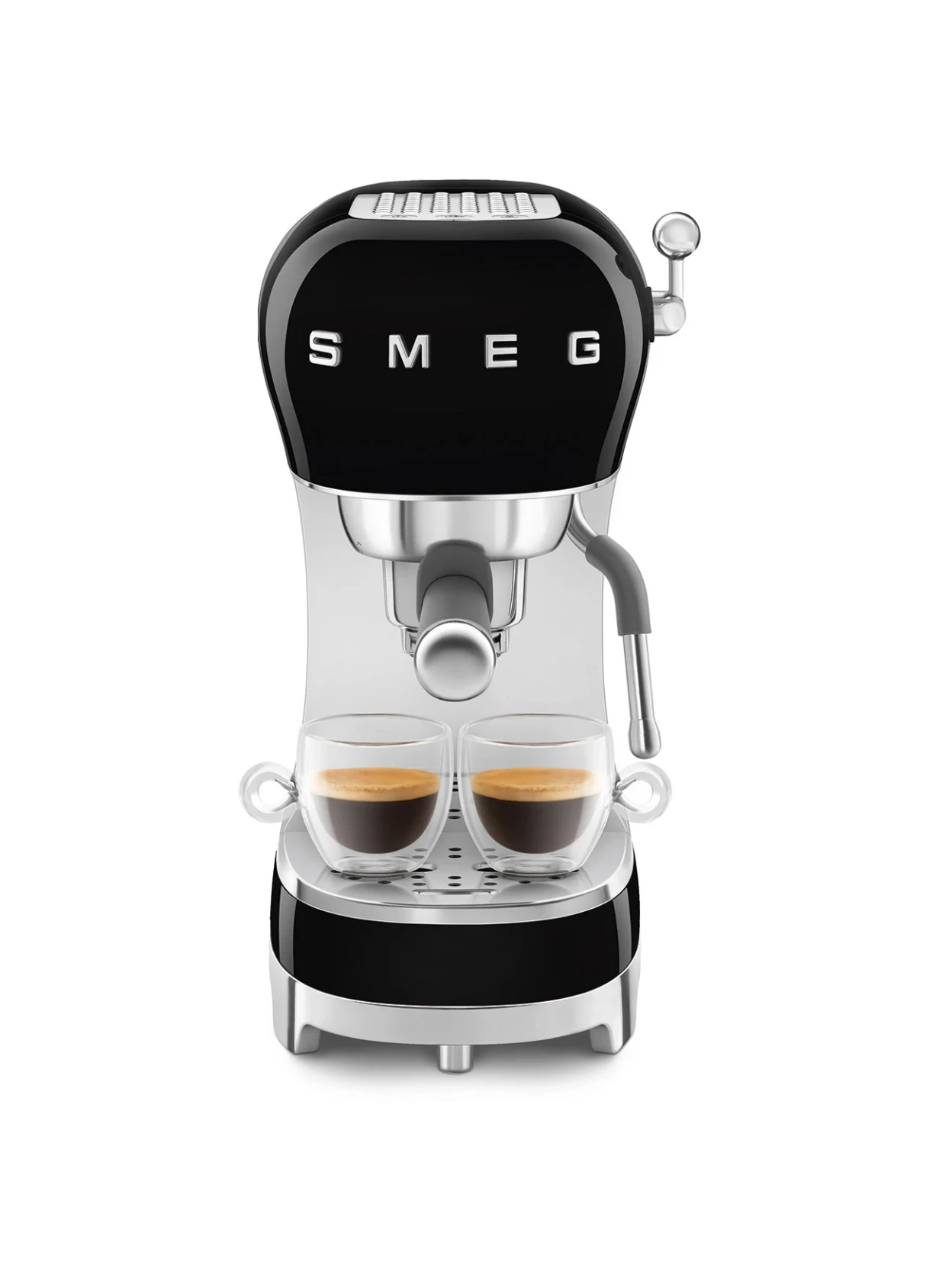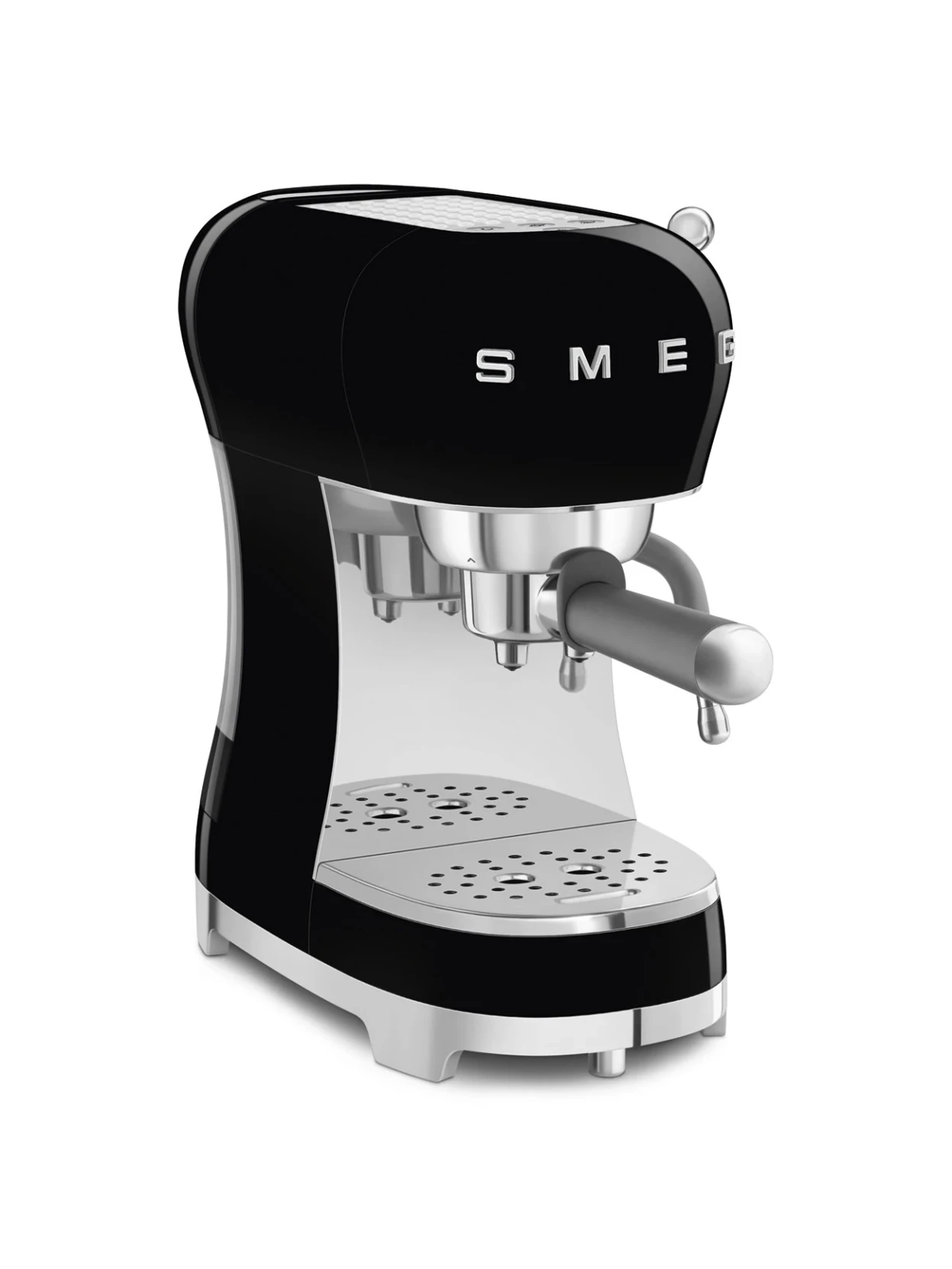 The black Smeg manual espresso machine is designed for those who love authentic Italian espresso and want to bring design, quality, and versatility to their kitchen. The glossy black body, with chrome details and silver buttons, evokes the iconic 1950s style, becoming a distinctive element in any space. Made in Italy, it combines aesthetics and technology to deliver consistently intense coffee and a perfect crema.