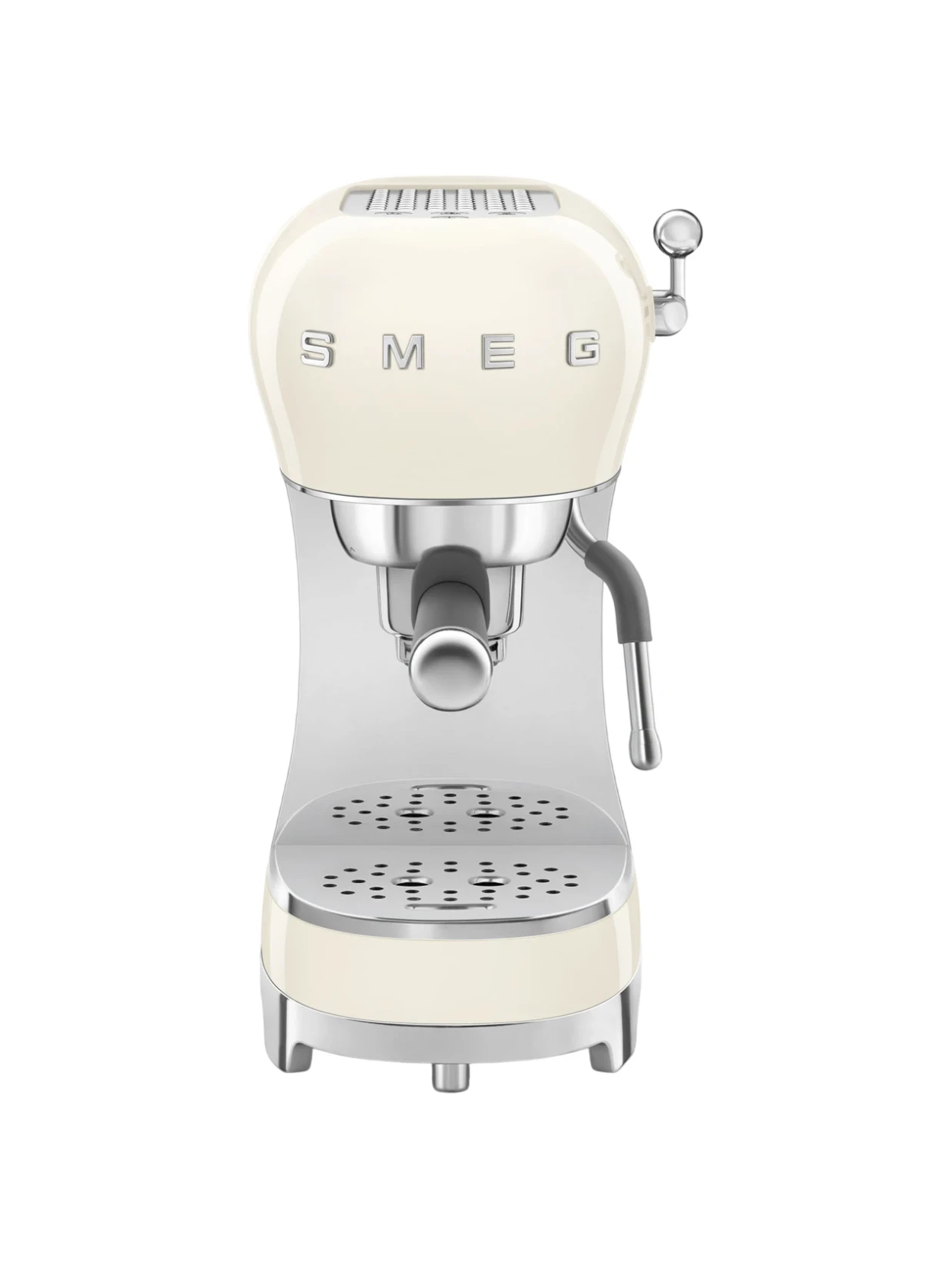 The Smeg manual espresso machine in a cream finish brings 1950s style and advanced technology to the kitchen. Featuring a Thermoblock system, stainless steel filter holder, and 15-bar pump, it prepares a rich, creamy espresso in seconds. The steam wand creates perfect cappuccinos and lattes, transforming every coffee break into a special moment.