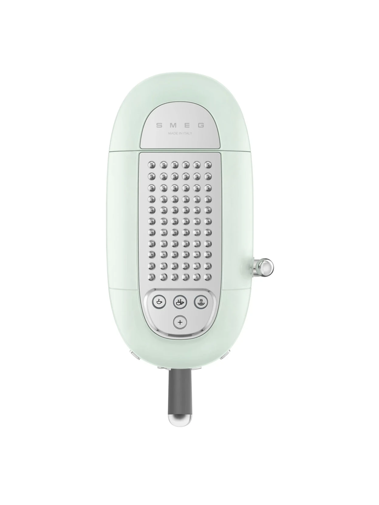 The Smeg Pastel Green manual espresso machine is designed for those who love authentic Italian espresso and want an elegant and functional appliance. The delicate and refined pastel green color adds a touch of freshness and style to the kitchen, inspired by Smeg's signature 1950s design, while chrome details and silver buttons complete the sophisticated aesthetic.