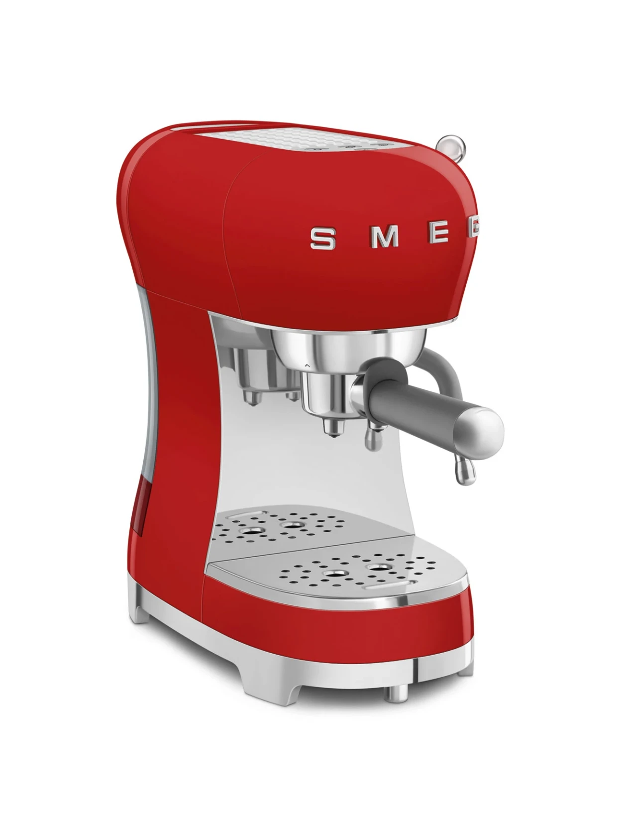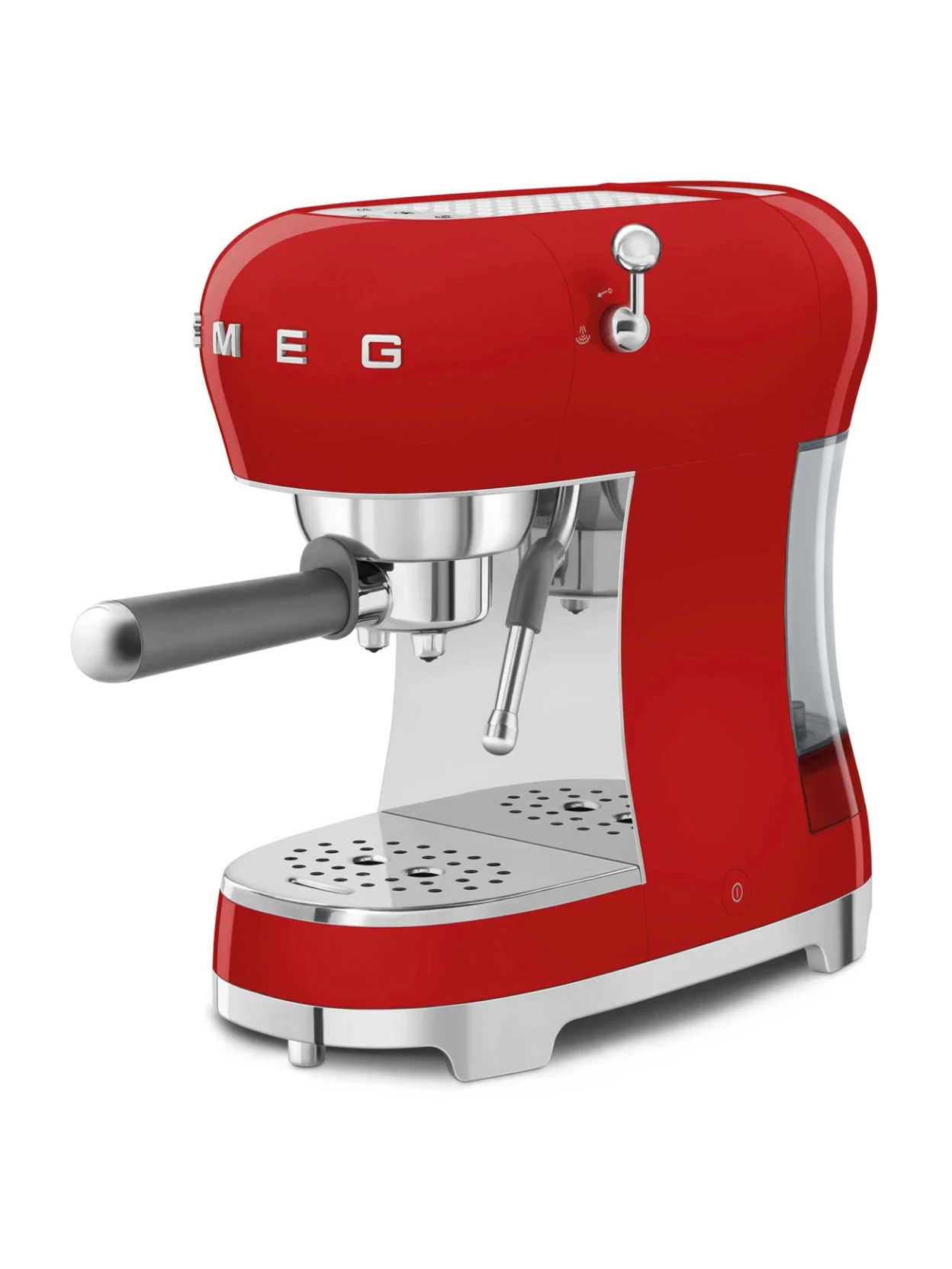 The Smeg manual espresso machine in red is designed for those who want to enjoy a true Italian espresso with style and functionality. The glossy red color, inspired by 1950s design, adds a touch of character and liveliness to the kitchen, while chrome details and silver buttons complete the elegant and refined aesthetic.