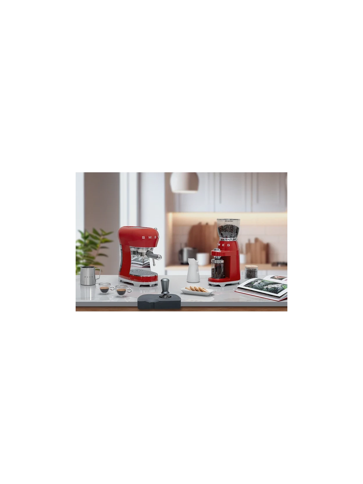 The steam wand allows you to easily prepare cappuccinos, lattes, and flat whites with a creamy, velvety froth. The removable 1.1-liter water tank, drip tray, and passive cup warmer simplify daily maintenance, while the space for larger cups and non-slip base complete the functional design. With empty tank, descaling and programmable standby warnings, the Smeg Rossa combines aesthetics, innovation and professional performance for a perfect espresso every day.