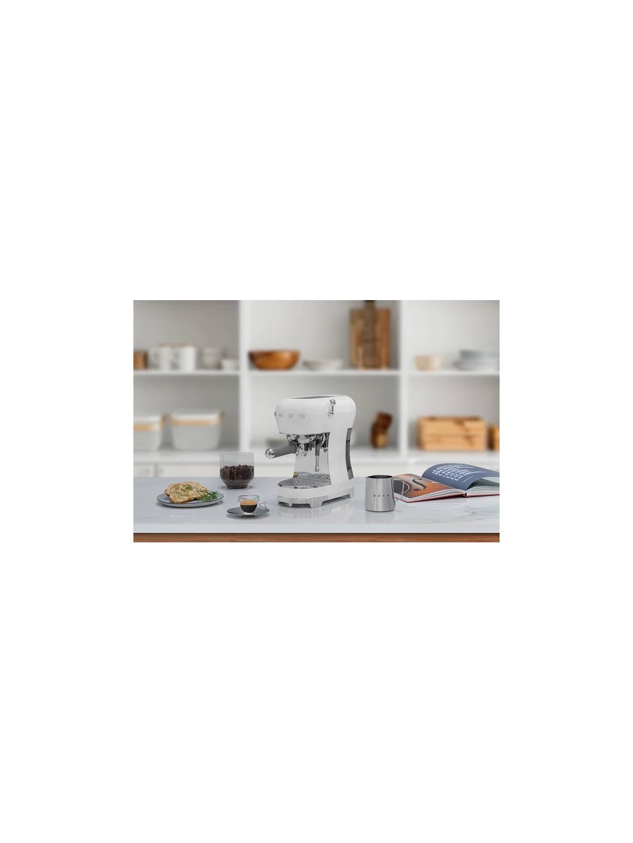 The steam wand allows you to easily create cappuccinos, lattes, and flat whites with a creamy, velvety froth. The removable 1.1-liter water tank, drip tray, and passive cup warmer simplify daily maintenance, while the space for larger cups and non-slip base complete the practical and functional design. With features such as empty tank warning, descaling and programmable standby, the Smeg Bianco combines aesthetics, innovation and professional performance for a perfect espresso every day.