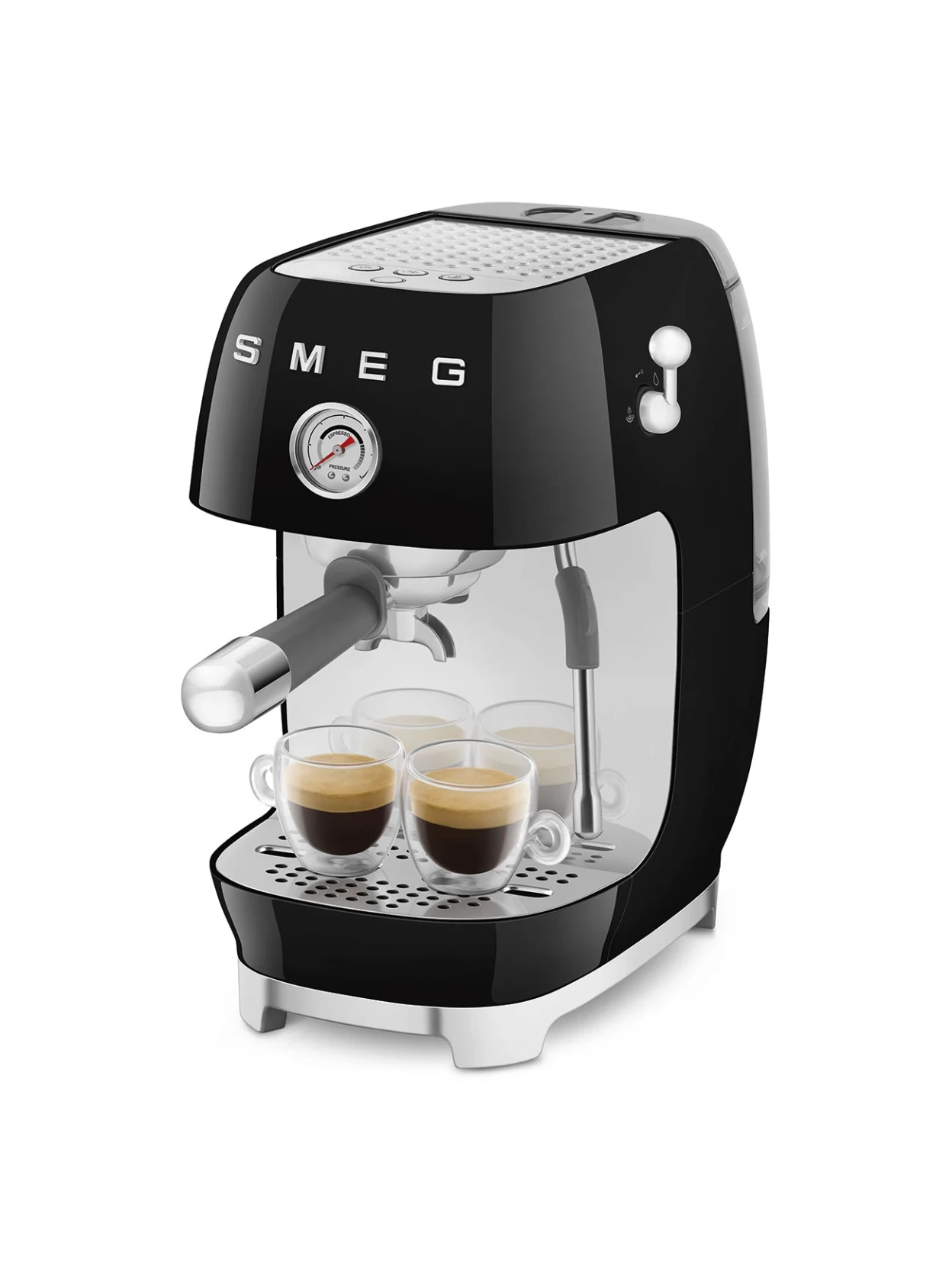 Transform every coffee break into a barista experience with the Smeg manual espresso machine with Cold Brew function, which combines advanced technology and the retro charm of the 50's Style aesthetic. The Gloss Black finish gives a touch of modern and sophisticated elegance to the kitchen, while the professional performance guarantees café-quality results directly at home.
