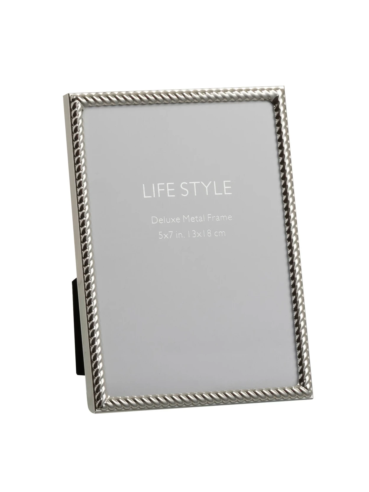 Silver metal photo frame with a diagonal stripe design, 13x18 cm. Elegant and modern, it's perfect for displaying precious photos at home or in the office.