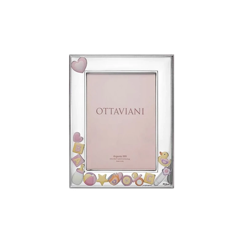 The Ottaviani Baby Duck photo frame in 999 silver combines elegance and tenderness in a delicate and refined design. The frame, embellished with pink details and a cute duck motif, is designed for little ones, making every photograph even more special. Available in 9x13 cm and 13x18 cm formats, it's an ideal gift for a birth, baptism, or first birthday, or simply to preserve precious memories of your little girl's growth. Ottaviani's quality and craftsmanship ensure a precious, elegant, and timeless object, perfect for a child's bedroom or as a special gift.style.