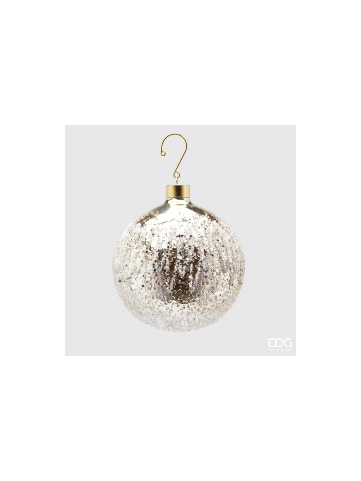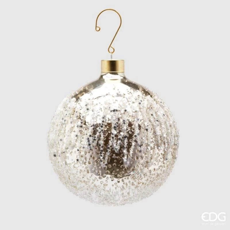 Bring magic and light to your Christmas with this silver glass Christmas bauble. The tiny stars and glittering details catch the light, creating a sparkling and precious effect on trees, garlands, and centerpieces. With a diameter of 12 cm, this bauble is designed for those who love elegant and luminous decorations, capable of transforming every corner of the home into a festive and enchanting atmosphere.