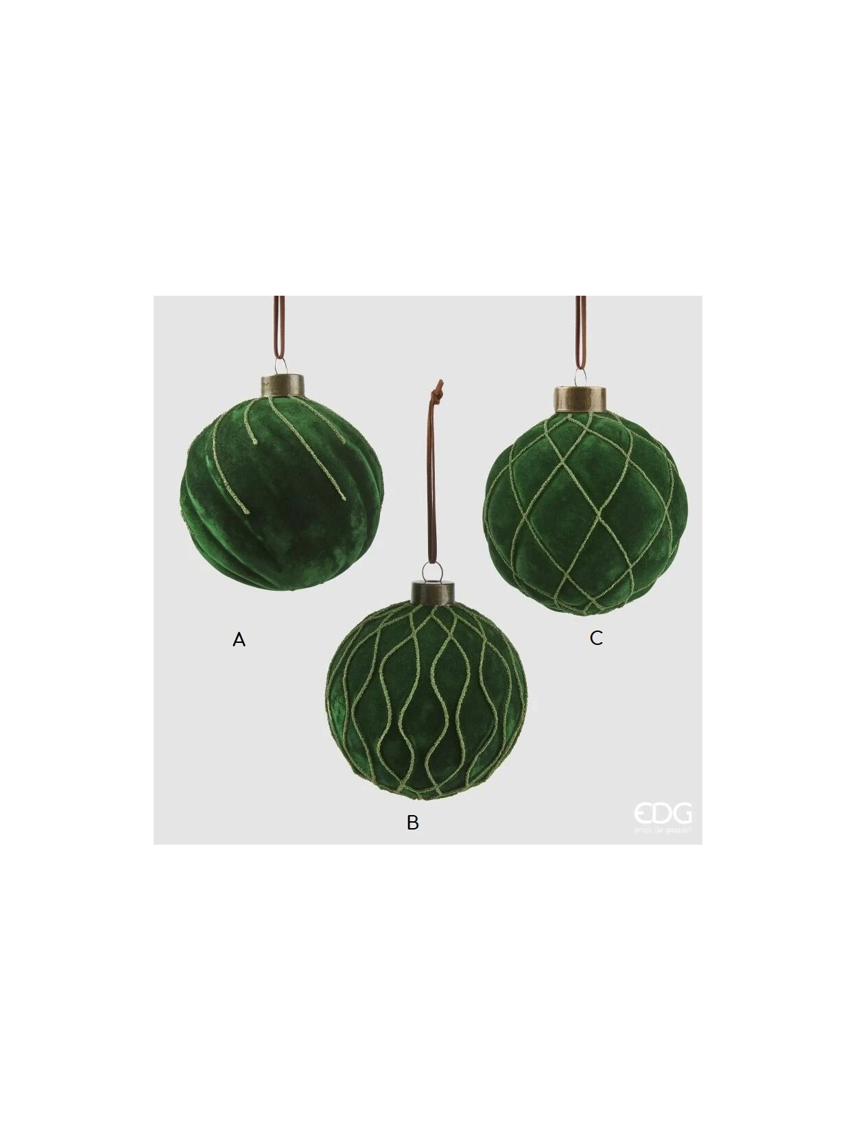 Elegant green velvet Christmas bauble with sparkling glitter decorations. Available in 3 designs (A, B, C) for creating unique combinations.