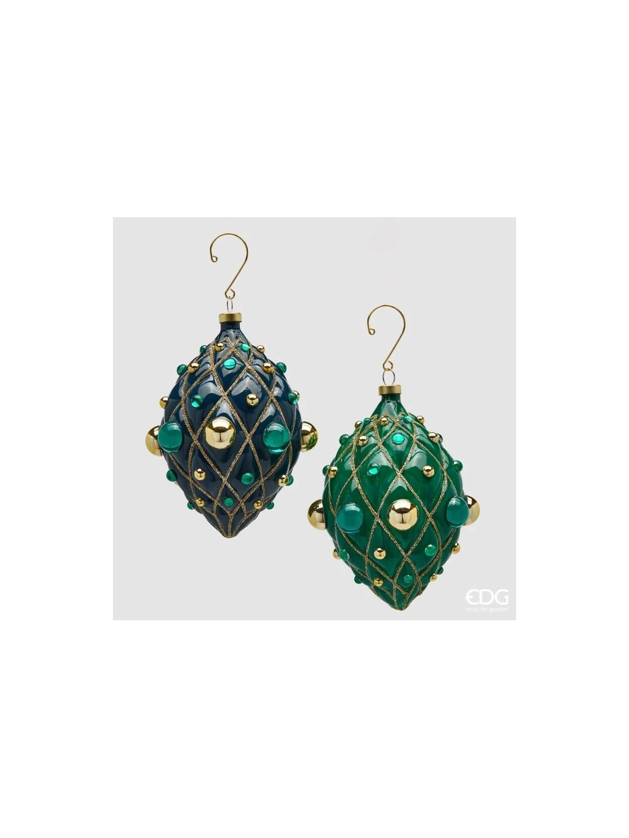 Give your Christmas tree a touch of elegance and magic with this 15 cm tall cast glass Christmas ball decorated with gold and green pearls. Available in two gorgeous shades of green, light and dark, this ball catches the light, creating sparkling, deep reflections, perfect for enhancing any branch with style and sophistication. Ideal alone or paired with other ornaments from the same collection, it adds charm and warmth to your Christmas, transforming every detail into a small moment of pure beauty.