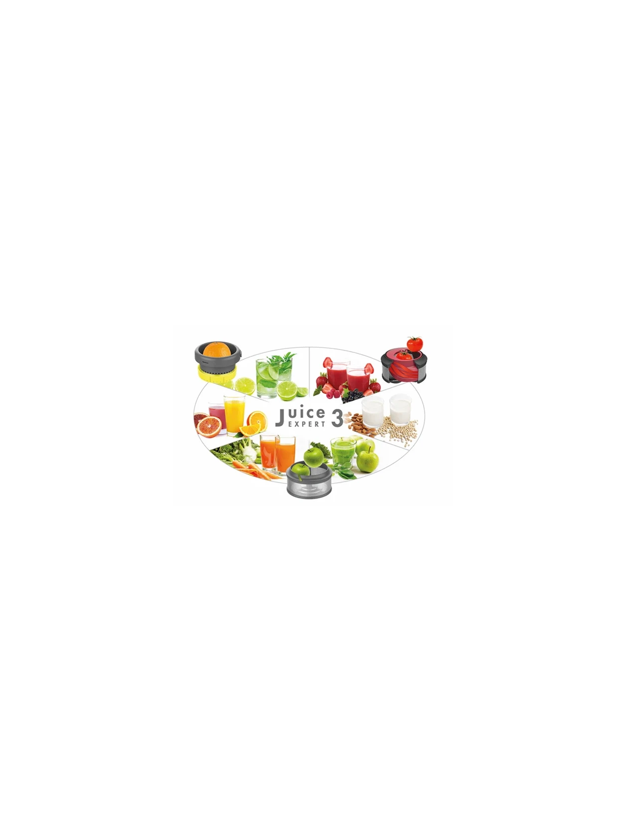 The Magimix Juice Expert 3 allows you to cold-press the best juices from fruits and vegetables, preserving vitamins and nutrients. With Extra Press XL technology, a built-in juicer, a sieve filter, and an XL hopper, it easily creates fresh juices, smoothies, plant-based milks, and nectars. Its ultra-quiet 400W professional motor is easy to clean and comes with a 30-year warranty.