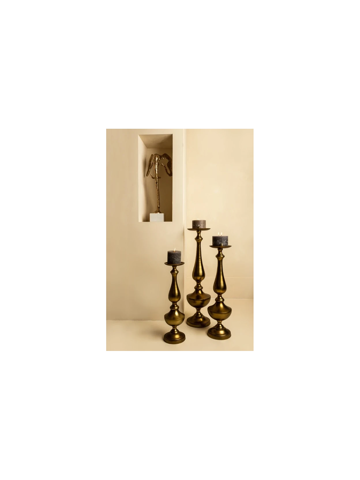 The Centy candle holder by PTMD in a brass finish is crafted from semi-cast aluminum; elegant and refined. Available in two sizes, it adds light and style to interior spaces.