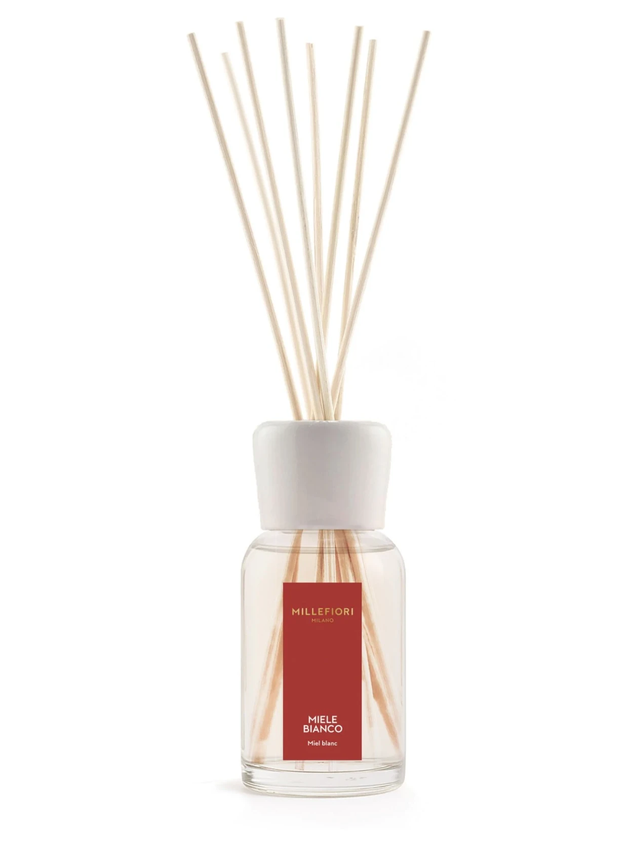 Give the gift of holiday cheer with this gift set, complete with a 100 ml diffuser and a "Miele Bianco" car freshener. A sweet and enveloping fragrance: velvety honey, soft milk, jasmine flowers, and warm notes of vanilla, caramel, and amber.