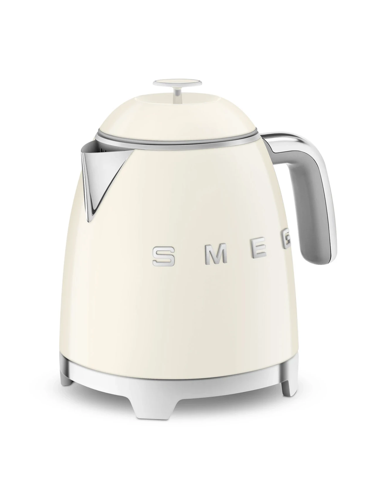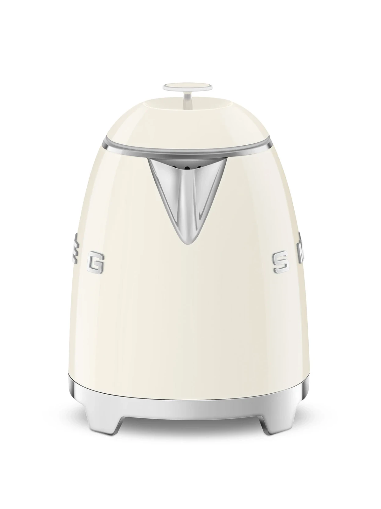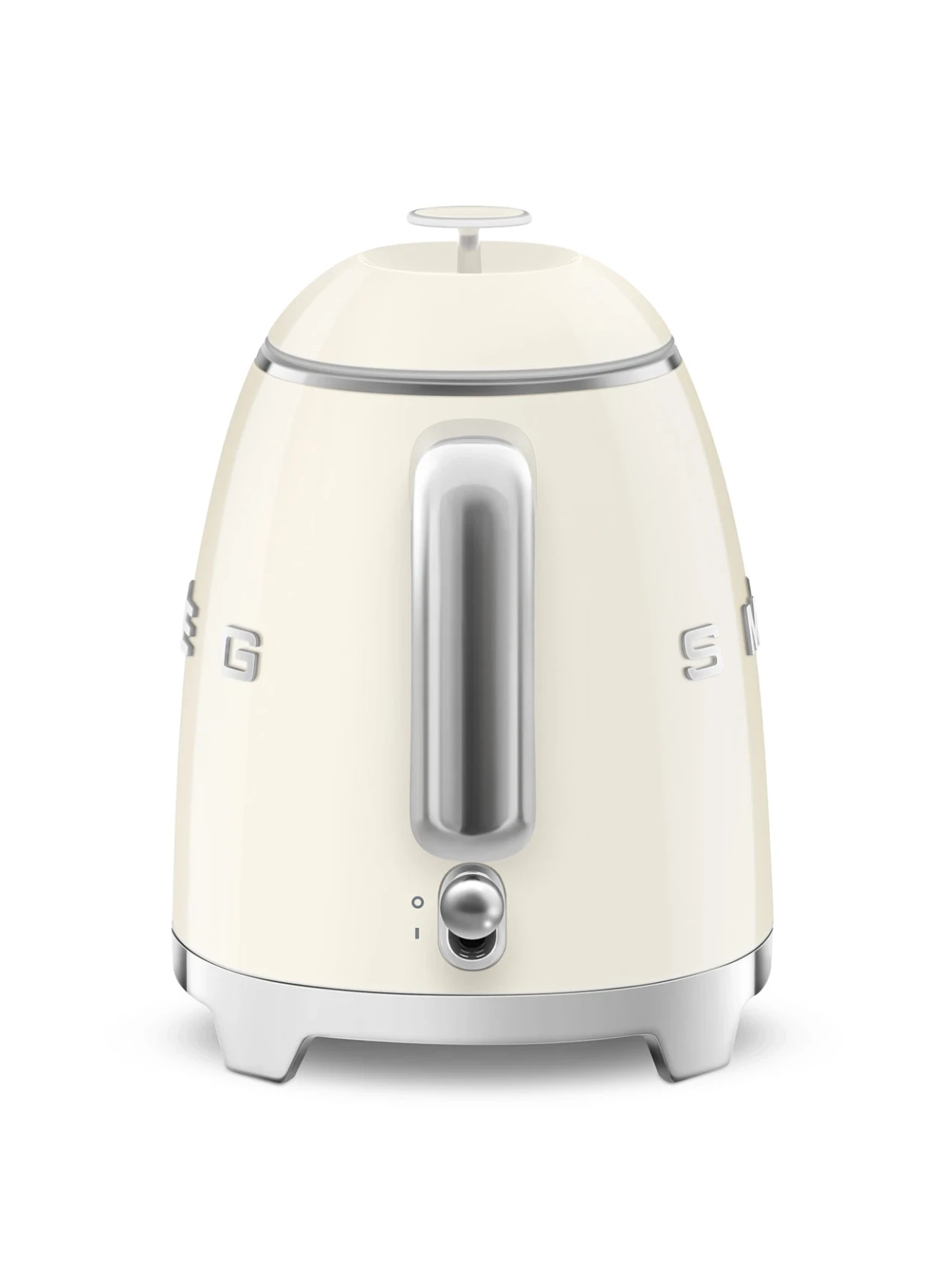 The Smeg Glossy Cream 50's Style mini electric kettle combines iconic style, compactness, and practicality. With a 0.8-liter capacity (3 cups) and 1400 W of power, it's perfect for small spaces like home offices, living rooms, or hotel rooms, reducing water and energy waste.