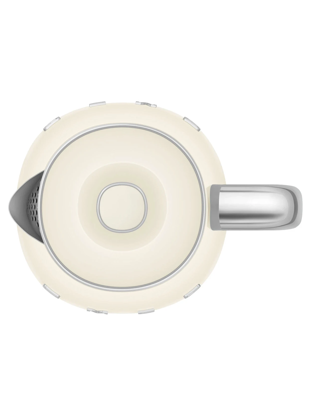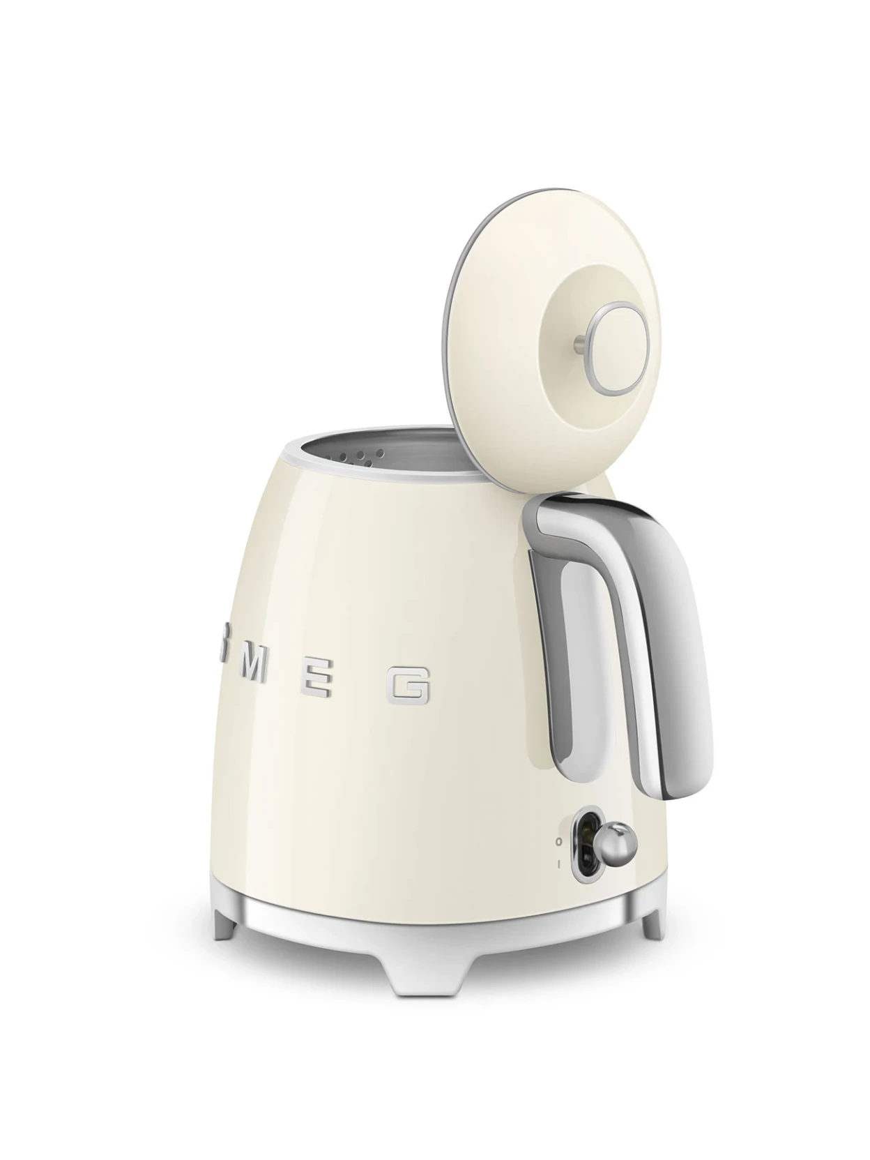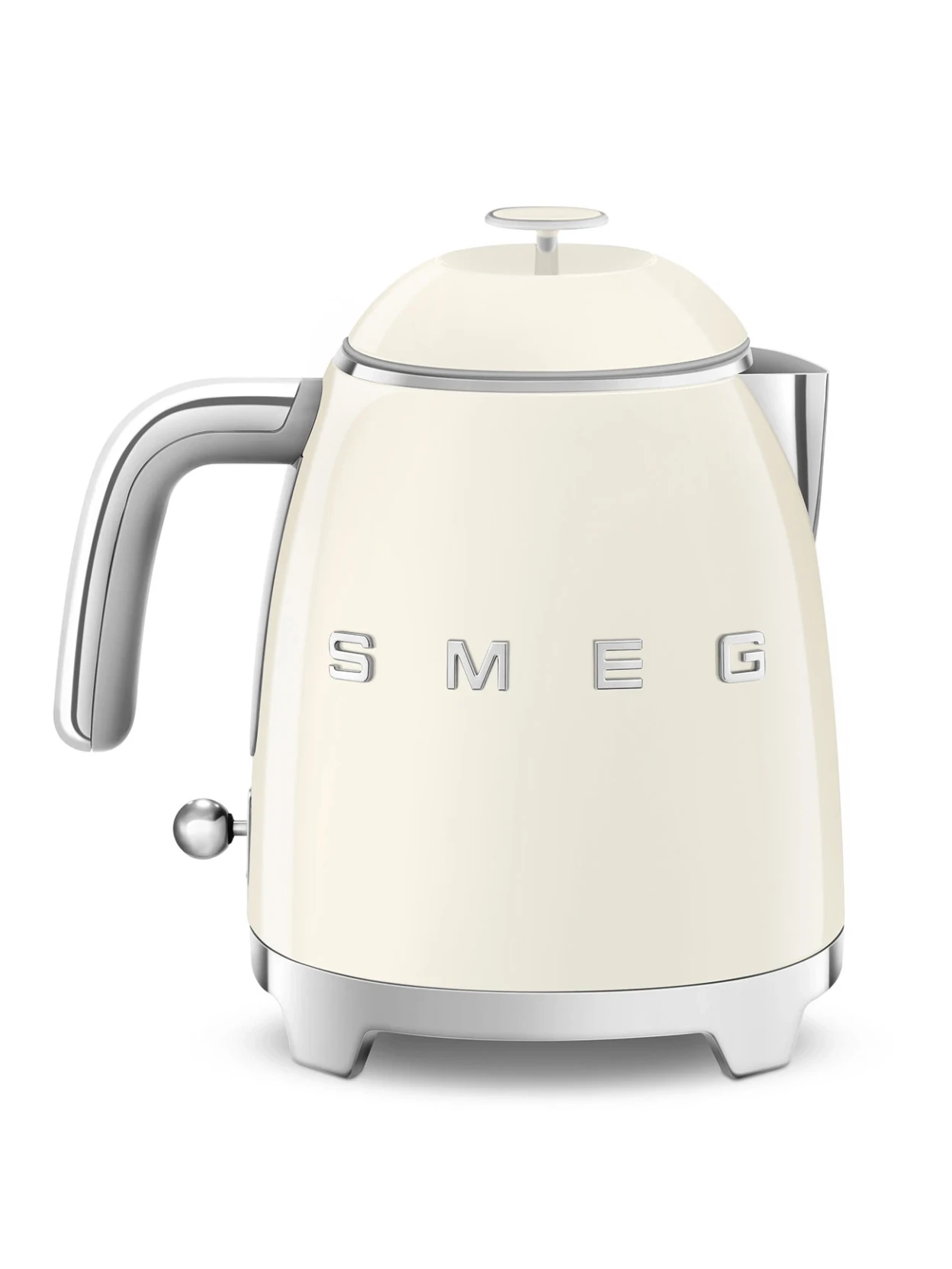 The Smeg Glossy Cream 50's Style mini electric kettle combines iconic style, compactness, and practicality. With a 0.8-liter capacity (3 cups) and 1400 W of power, it's perfect for small spaces like home offices, living rooms, or hotel rooms, reducing water and energy waste.