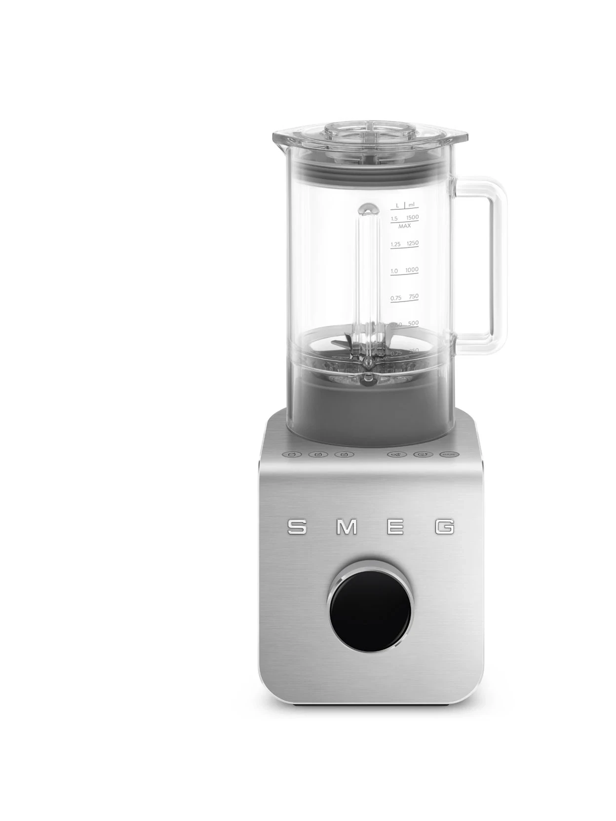 The LCD display integrated into the control knob shows the speed, processing time, and duration of automatic programs, improving precision and ease of use. The 1.5-liter Tritan™ Renew jug, durable and dishwasher-safe, is ideal for intensive and continuous use. With its refined design and high performance, the Smeg Matte Black blender is the perfect solution for those who want a powerful, precise, and well-being-focused appliance, with all the quality and iconic Smeg style.