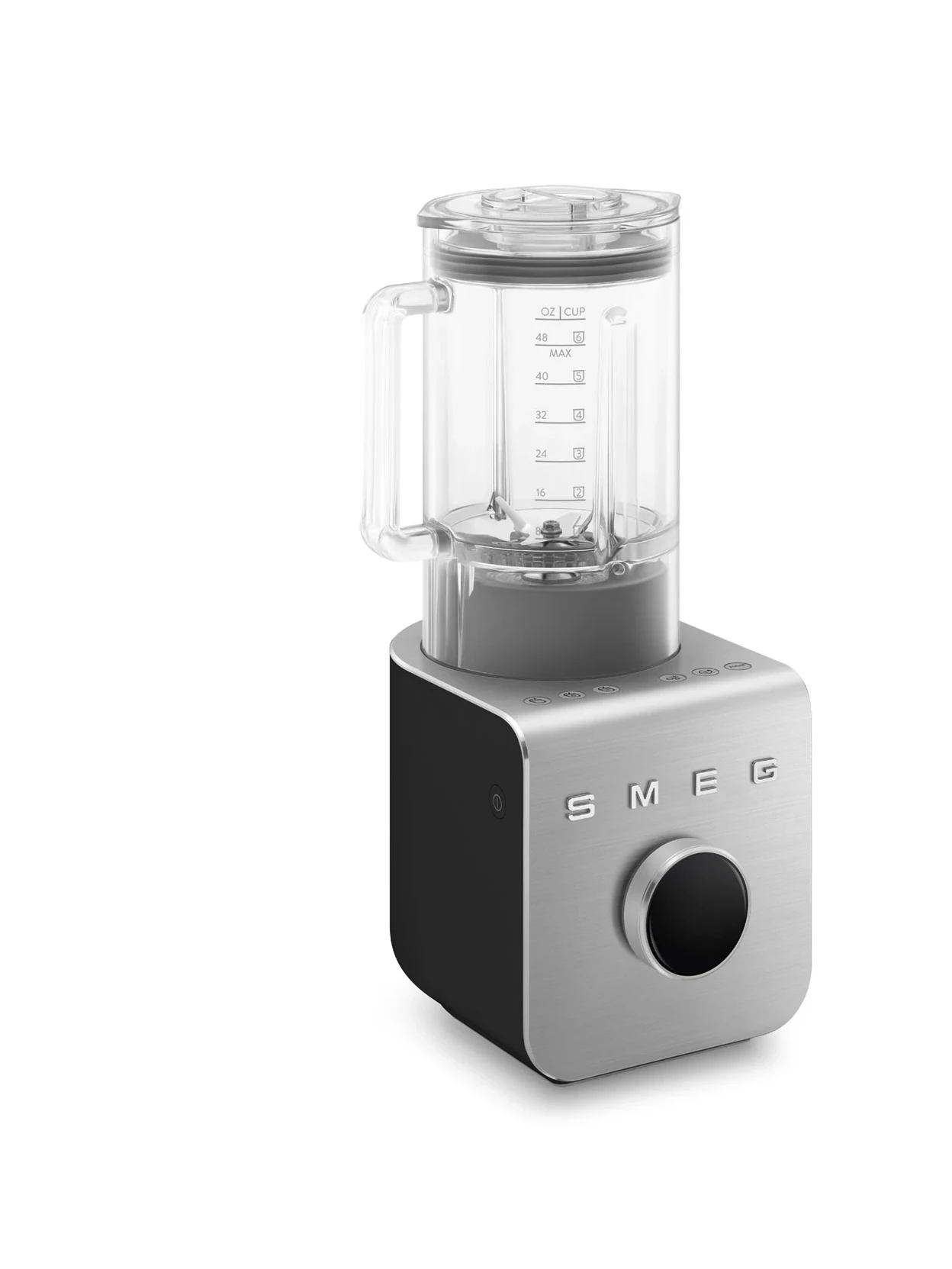 Smeg High-Performance Blender in Matte Black: professional power and contemporary design. 1400W motor, 9 speed levels, 5 automatic programs, and Single & Family mode. It delivers excellent results in every preparation. Ideal for smoothies, cold desserts, nut butters, and plant-based milks.
