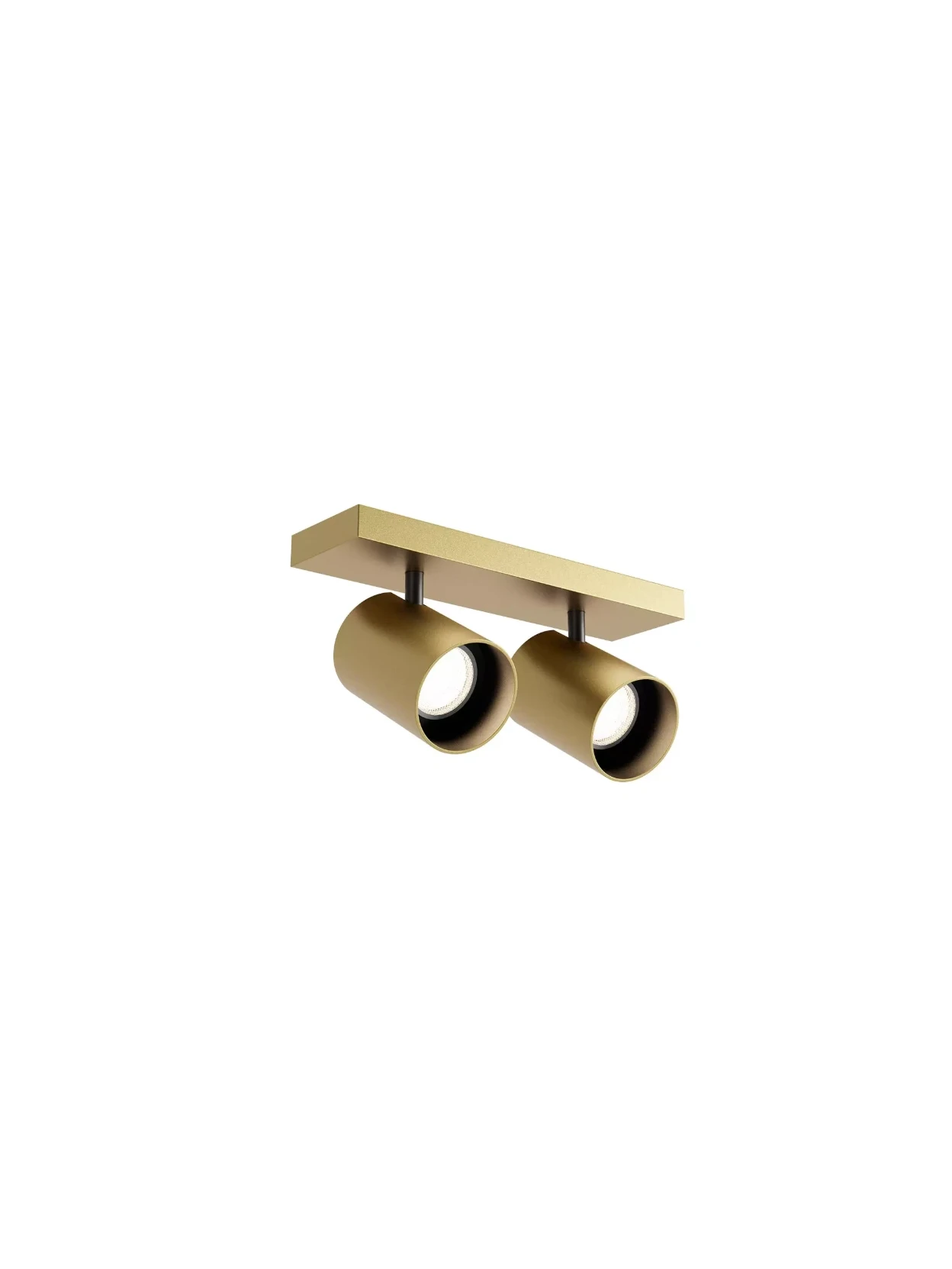 Corinth by Redo Group is a double adjustable mini projector; the ideal choice for targeted and stylish lighting. Designed for ceiling or wall installation, it houses two LED PAR16 bulbs with GU10 socket (max 7W). The extruded aluminum structure is powder coated in white, black or matt gold on the outside, with an internal contrast in matt black. Powered at 220–240V, 50/60Hz, it has an IP20 protection rating and protection class I. The lamp can be installed both on the ceiling and on the wall.