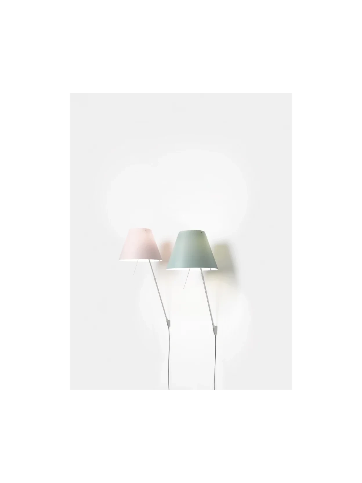 The Costanza wall lamp by Luceplan, designed by Paolo Rizzatto, is a refined contemporary reinterpretation of the classic lampshade, designed to offer maximum flexibility and timeless aesthetics. The telescopic aluminum stem allows you to adjust height and depth, making this lamp ideal for lighting living areas, bedrooms, corridors and contract spaces. The screen-printed polycarbonate lampshade diffuses a soft and enveloping light, perfect for creating a welcoming and comfortable atmosphere. Thanks to the dimmable function with E27 fitting, the light intensity can be modulated according to different needs, offering visual comfort and practicality of use. Available with lampshades in different colours, Costanza adapts naturally to modern and classic furnishing styles, becoming not only a source of light, but a true decorative element. Choosing the Costanza wall lamp means investing in an icon of Italian design by Luceplan, capable of enhancing the wall with lightness, elegance and personality.