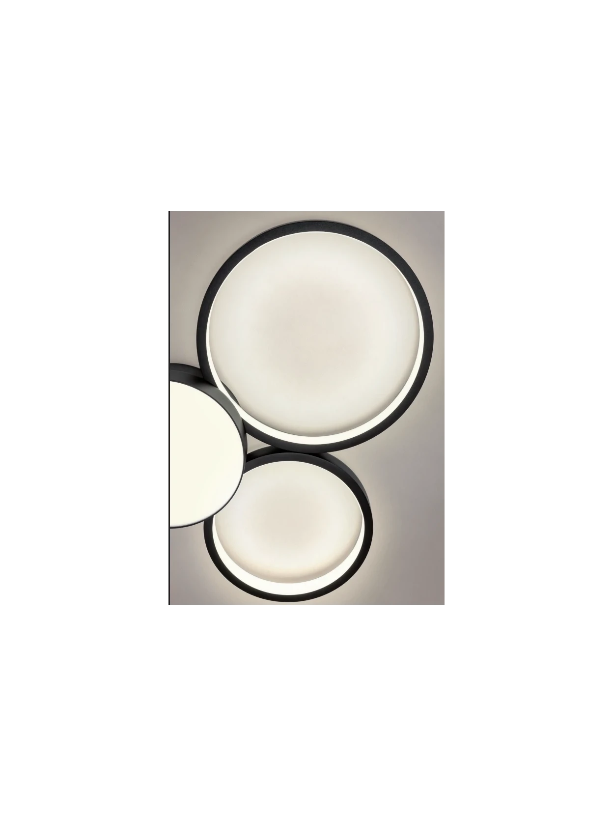 Cronos by Redo Group is an interior ceiling lamp with a matt white painted aluminum and metal structure. The white satin acrylic diffusers offer uniform and pleasant indirect lighting. Equipped with high-efficiency SMD LEDs and a 3-step dimming system via switch, these lamps combine high lighting performance with a sober and contemporary design. Color temperature 3000K, CRI 90, power supply 220–240V (50/60Hz), protection degree IP20, Class I