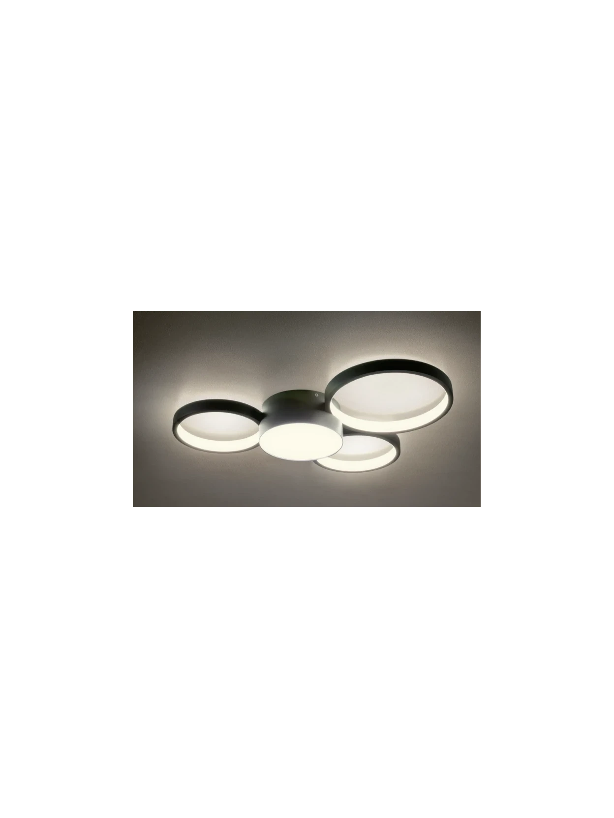 LED ceiling lamp with matt black aluminium and metal structure and white satin acrylic diffuser.