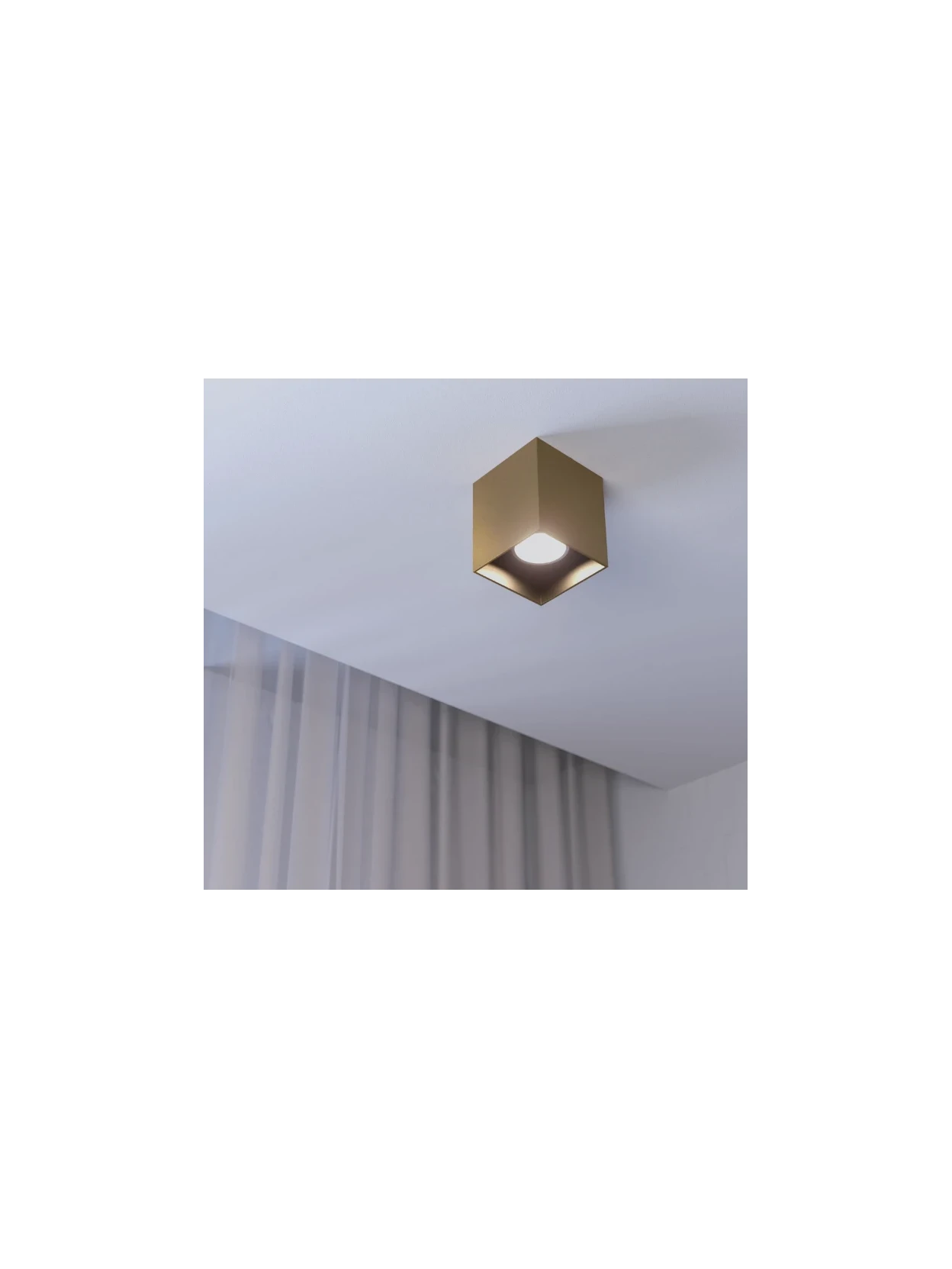 Corinth by Redo Group is a square ceiling lamp that combines minimal elegance and functionality. Metal and aluminum structure with a matte finish (white, gold or black) and contrasting black interior. Ideal for modern environments. Uses a GU10 bulb max 7W, 220–240V, IP20, class I.