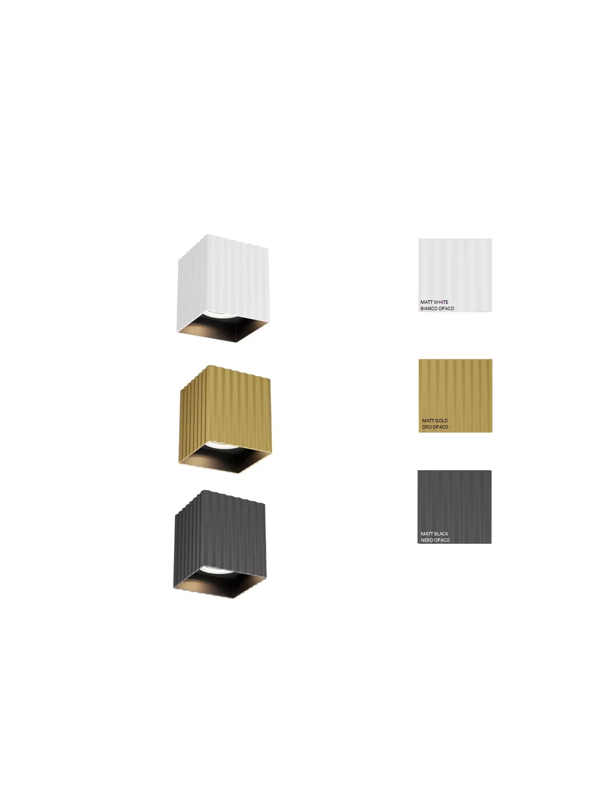 Delphi by Redo Group is a square ceiling lamp that combines minimalist elegance and functionality. Its metal and aluminum frame has a matte finish (white, gold, or black) and a contrasting black interior. Ideal for modern spaces. Uses a GU10 bulb max 7W, 220–240V, IP20, class I.