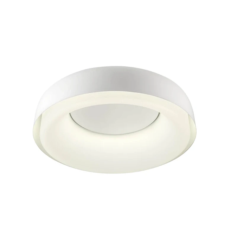 Dip by Redo Group is a modern LED ceiling lamp suitable for interiors; it features a glossy white painted metal frame and an opal polypropylene diffuser. It features high-efficiency Bridgelux SMD LEDs, allowing for color temperature selection from 2700K to 6500K, offering warm or cool light depending on your needs.