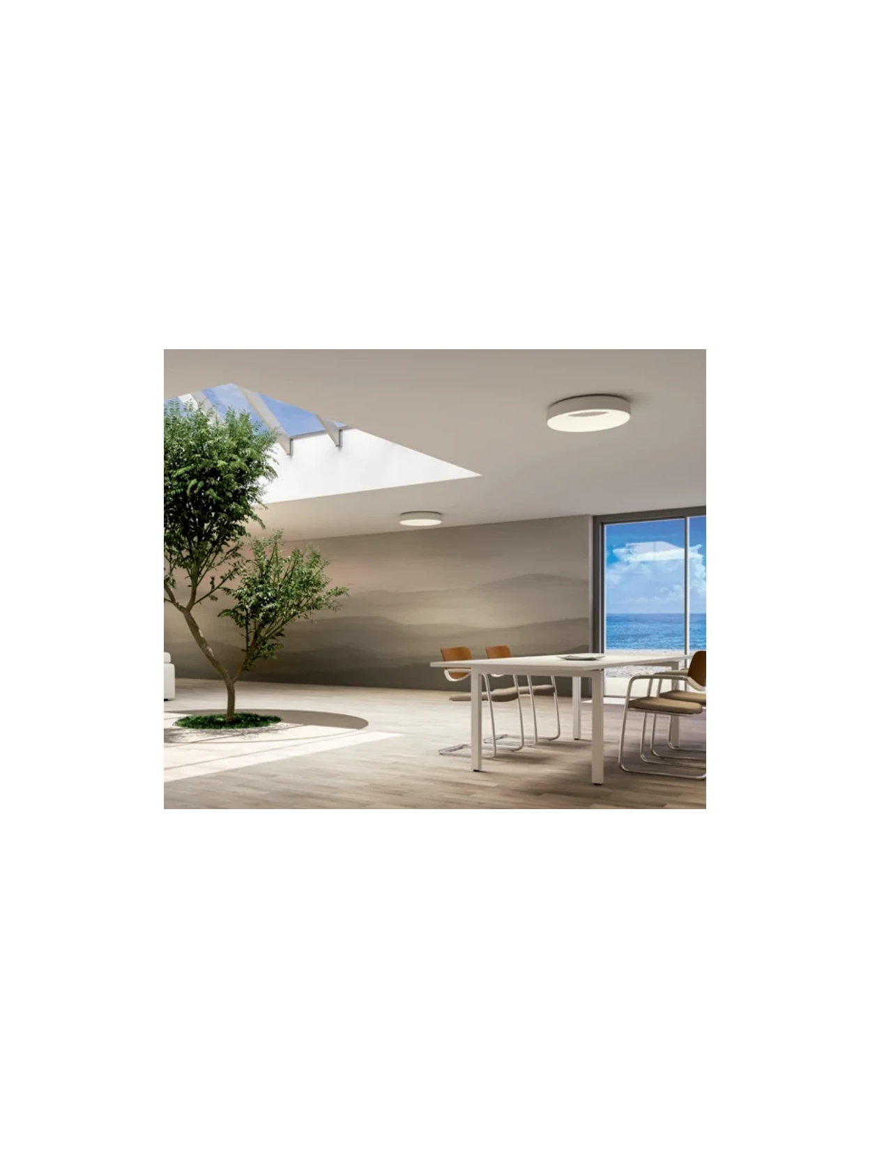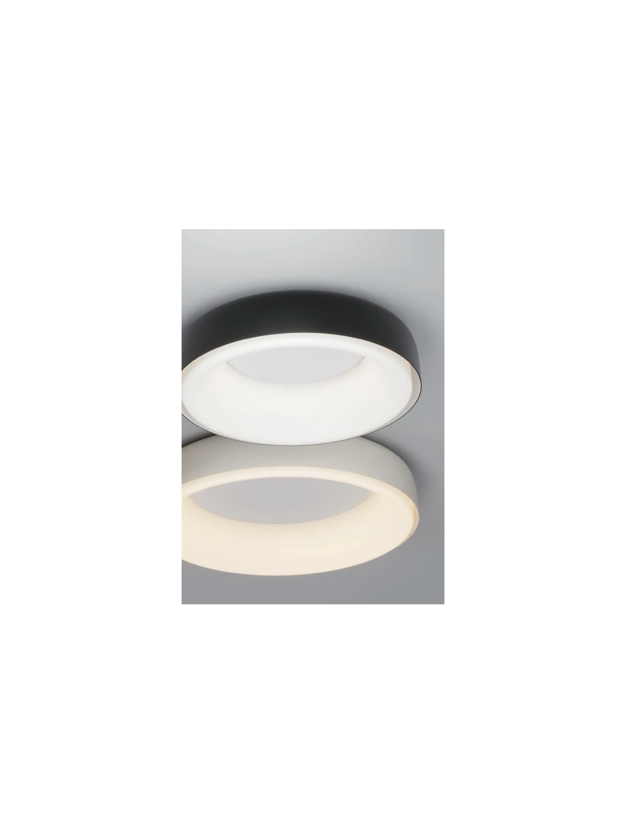 Dip by Redo Group is a modern LED ceiling lamp suitable for interiors; it has a glossy black painted metal frame and an opal polypropylene diffuser. It features highly efficient Bridgelux SMD LEDs, allowing for a color temperature selection from 2700K to 6500K, offering warm or cool light depending on your needs.