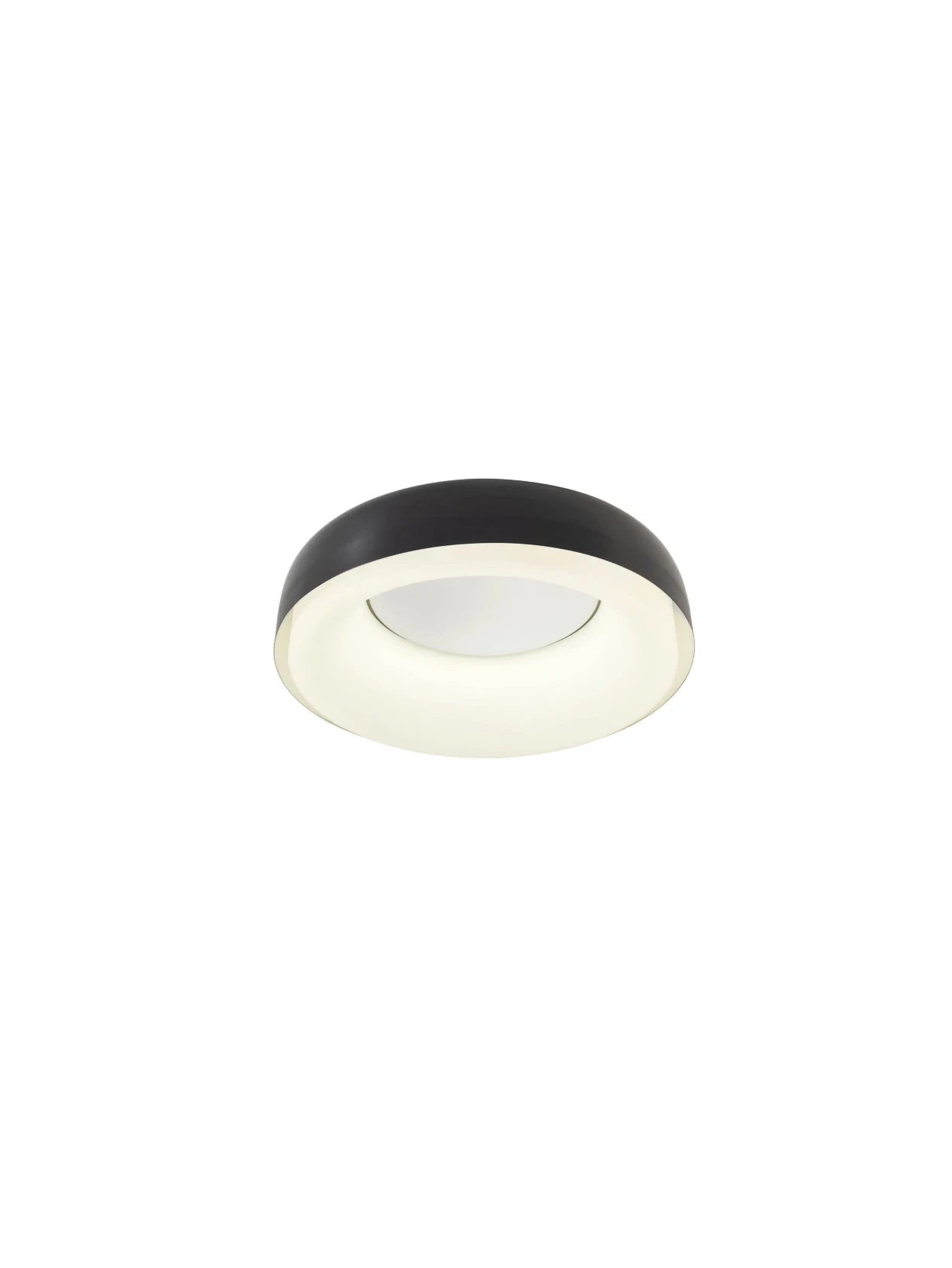 LED ceiling lamp with metal structure painted in glossy black finish and opal white polypropylene diffuser.