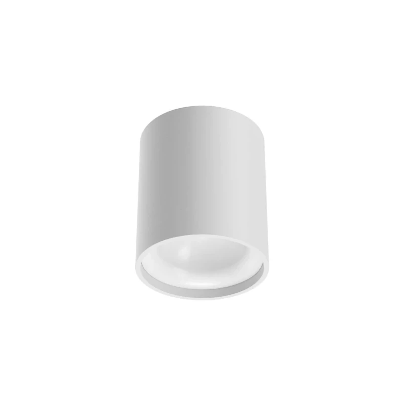 LED ceiling lamp with extruded aluminum structure painted in a matt white finish and white opal polycarbonate diffuser.