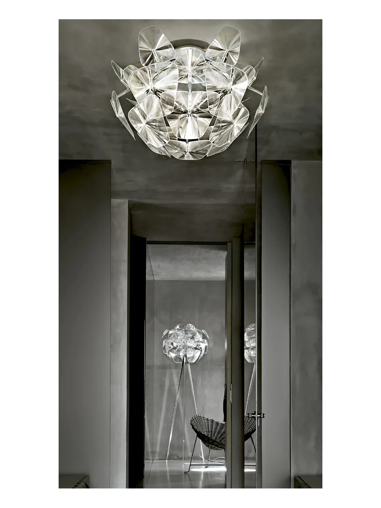Hope by Luceplan is an iconic, lightweight, and luminous ceiling lamp, available in 69 cm and 109 cm diameters. The methacrylate petals refract the light, creating a brilliant, dramatic effect, while the polished stainless steel structure lends a contemporary elegance. A refined decorative solution that illuminates any interior space with style.