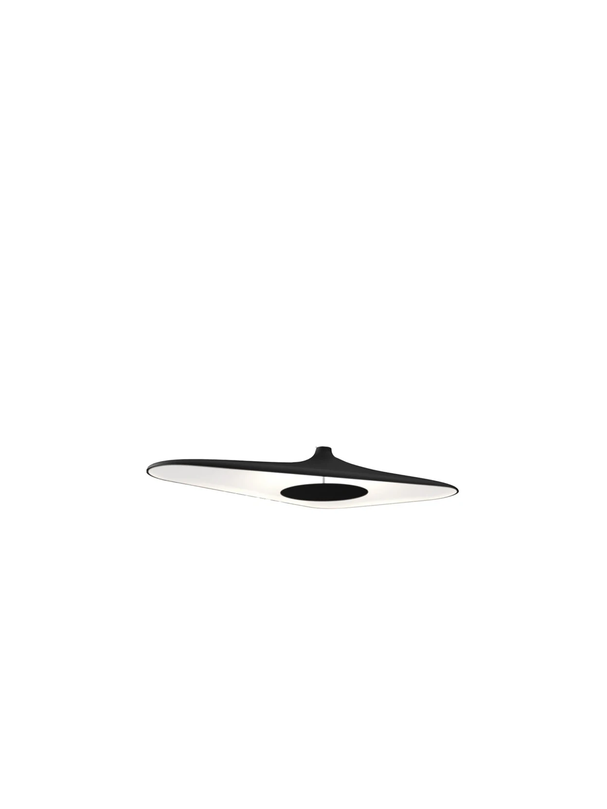 The Soleil Noir ceiling lamp by Luceplan, in black and white, brings a sculptural design with a strong visual impact to interiors. Its fluid form in molded polyurethane foam and advanced optical system ensure perfectly uniform light diffusion, stylishly enhancing modern and sophisticated spaces.