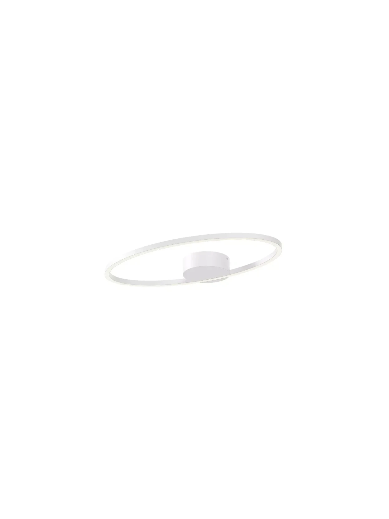 LED ceiling lamp with a matte white metal and aluminum frame. Satin white PVC diffuser.