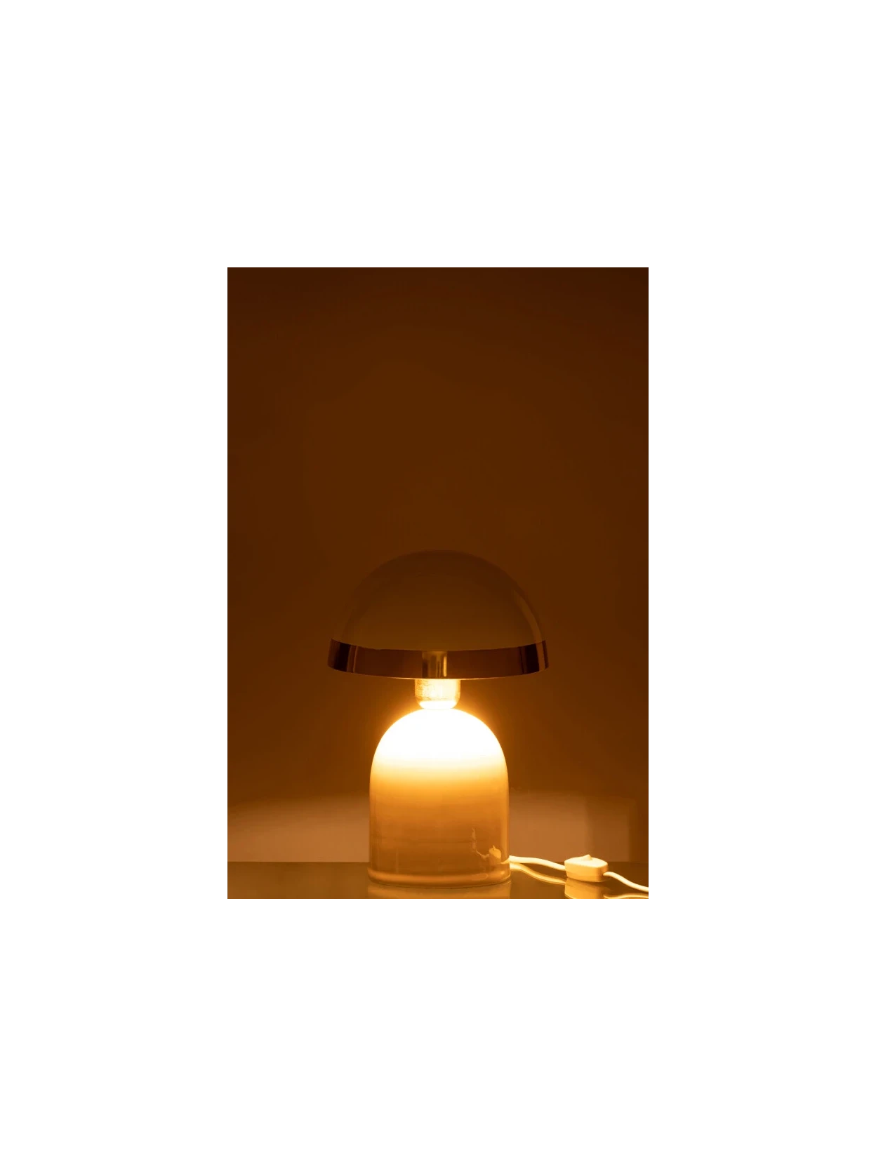 Add light and class to your spaces with this glossy white metal table lamp with a gold trim. Perfect for the living room, study, or bedroom, this lamp combines modern design and elegant details, becoming a distinctive furnishing element. Crafted from high-quality polished metal, it measures 20 x 20 x 30 cm, with an E27 bulb holder and a maximum power of 25 W. The 200 cm cable allows for flexible positioning, while the contrast between the elegant white and gold trim creates a sophisticated and luminous effect.