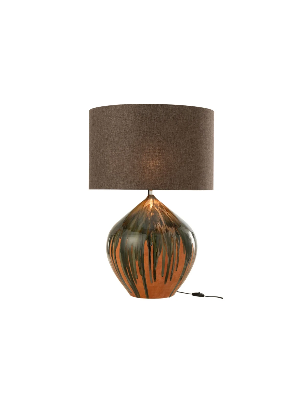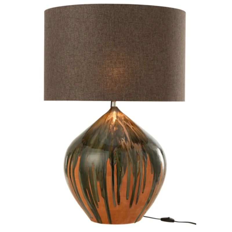 A unique design piece: this ceramic lamp with a dripping paint effect transforms any room into a sophisticated and creative space. The ceramic base, featuring dripping glazes that glide across the surface, creating a play of color and movement, makes each piece truly authentic. The large lampshade completes the structure, diffusing a soft, enveloping light, ideal for the living room, reading area, or bedroom. Standing 83 cm tall and combining functionality and decoration, this lamp is perfect for those seeking a furnishing accessory that combines elegance, modernity, and artistic originality.