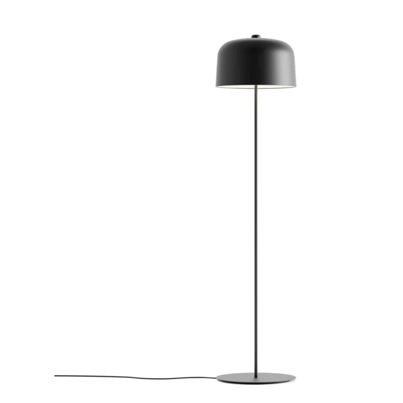 The Zile floor lamp by Luceplan, in an elegant matte black finish, combines contemporary design and sustainability. The bio-durable PLA diffuser, 80% derived from renewable sources, diffuses a warm, enveloping light, while the steel structure ensures stability and style. Zile is the perfect choice for those seeking eco-friendly lighting without sacrificing design.