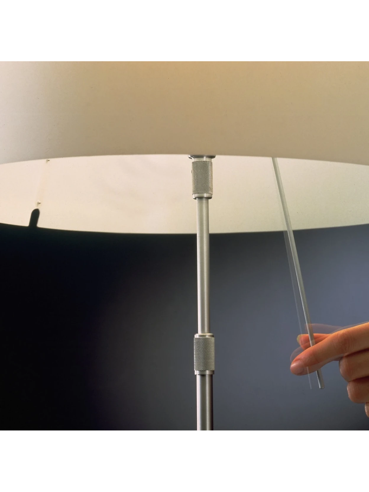 The Costanza floor lamp by Luceplan, designed by Paolo Rizzatto, is a modern and inimitable reinterpretation of the traditional lampshade, proposed in a version with an even more elegant character thanks to the brass stem. This finish gives warmth and personality to the lamp, making it perfect for sophisticated environments, both contemporary and classic. The essential and rigorous design places the essence of light at the centre, diffused softly and uniformly by the screen-printed polycarbonate lampshade, ideal for creating a welcoming and comfortable atmosphere. The telescopic stem allows you to adjust the height easily, while the dimmable function with E27 LED source allows you to modulate the light intensity according to different needs. Part of the historic Costanza collection, this floor lamp combines tradition and innovation in a perfect balance, transforming itself into an iconic and timeless furnishing element. Choosing Costanza with brass stem means investing in quality Italian design, capable of enhancing every space with style and refinement.